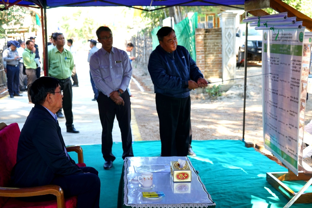 ဦးစွာ တိုင်းဒေသကြီးဝန်ကြီးချုပ်နှင့် တာဝန်ရှိသူများသည် မင်းဘူး (စကု) မြို့နယ် ကံသစ်-ကံကုလား-ကျောက်စစ်ပုံလမ်းမှ ပြည်ထောင်စုအထွေထွေပိုလျှံ ရန်ပုံငွေ ၁၅၃ ဒသမ ၆၂၅ သန်းဖြင့် လမ်းအရှည် (၅/၇) မိုင်၊ ထု ၄ လက်မ၊ အကျယ် ၁၈ ပေ မြေနီကျောက်စရစ်ခင်းခြင်းလုပ်ငန်းနှင့် ကံသစ်ရွာတွင်းလမ်းအရှည် ၁၅၅၀ ပေ၊ အကျယ် ၁၂ ပေ၊ ထု ၆ လက်မ ပြည်ထောင်စုအထွေထွေပိုလျှံ ရန်ပုံငွေ ၁၂၄ သန်းဖြင့် ကွန်ကရစ်ခင်းခြင်း လုပ်ငန်းခွင်များသို့ ရောက်ရှိပြီး ကြည့်ရှုစစ်ဆေးရာ လုပ်ငန်းပြီးစီးဆောင်ရွက်ခဲ့မှုအခြေအနေများနှင့်ပတ်သက်၍ ကျေးလက်လမ်း ဖွံ့ဖြိုးရေးဦးစီးဌာနနှင့် ကျေးလက်ဒေသ ဖွံ့ဖြိုးတိုးတက်ရေး ဦးစီးဌာနတို့မှ တာဝန်ရှိသူများ၏ ရှင်းလင်းတင်ပြချက်များအပေါ် တိုင်းဒေသကြီးဝန်ကြီးချုပ်က အရည်အသွေးပြည့်မီစွာဖြင့် သတ်မှတ်ကာလအတွင်း အချိန်မီပြီးစီးရေး အလေးထားဆောင်ရွက် ကြရန်မှာကြားခဲ့ပြီး ကျေးရွာတွင်းမှ ဒေသခံပြည်သူများအနေဖြင့် လမ်းအား ကောင်းမွန်စွာ ရည်ရှည်အသုံးပြုနိုင်ရေး ဝိုင်းဝန်းထိန်းသိမ်းဆောင်ရွက်သွားကြရန် မှာကြားကာ၊ ကျေးရွာပြည်သူများ၏ ဒေသဖွံ့ဖြိုးရေး တင်ပြချက်များအား ဖြည့်ဆည်းဆောင်ရွက်ပေးခဲ့သည်။