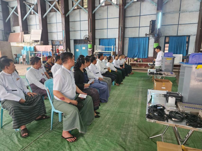 (၂၈.၁၂.၂၀၂၅)ရက်နေ့တွင် ကျင်းပပြုလုပ်မည့် ပါတီစုံဒီမိုကရေစီအထွေထွေရွေးကောက်ပွဲတွင် အသုံးပြုမည့် မြန်မာအီလက်ထရောနစ်မဲပေးစက် MEVM စက်များ ထုတ်ယူခြင်း၊ Installation ပြုလုပ်ခြင်း၊ စက်စမ်းသပ်ခြင်းနှင့် သရုပ်ပြဇာတ်တိုက်လေ့ကျင့် ဆောင်ရွက်နေမှုအား ပြည်ထောင်စုရွေးကောက်ပွဲကော်မရှင်အဖွဲ့၀င် ဦးအောင်စောဝင်း (ရန်ကုန်တိုင်းဒေသကြီးတာဝန်ခံ)၊ တိုင်းဒေသကြီး ရွေးကောက်ပွဲကော်မရှင်အဖွဲ့ခွဲ အဖွဲ့ဝင် ဒေါ်ဖြူဖြူဥ၊ ခရိုင်ရွေးကောက်ပွဲကော်မရှင်အဖွဲ့ခွဲ ဥက္ကဋ္ဌနှင့် အဖွဲ့ဝင်များ၊ မြို့နယ်စီမံခန့်ခွဲရေးနှင့်အုပ်ချုပ်ရေးကော်မတီဥက္ကဋ္ဌနှင့် အဖွဲ့ဝင်များ၊ မြို့နယ်ရွေးကောက်ပွဲကော်မရှင်အဖွဲ့ခွဲဥက္ကဋ္ဌနှင့် အဖွဲ့ဝင်များက ကြည့်ရှု့စစ်ဆေးခဲ့ကြပြီး ပြည်ထောင်စုရွေးကောက်ပွဲကော်မရှင်အဖွဲ့၀င် ဦးအောင်စောဝင်း (ရန်ကုန်တိုင်းဒေသကြီးတာဝန်ခံ)က MEVM မဲပေးစက် တပ်ဆင်အသုံးပြုခြင်းနှင့် ပတ်သက်၍ လိုအပ်သည်များ မှာကြားခဲ့သည်။