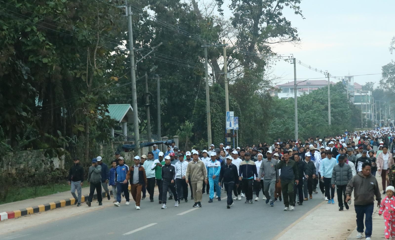 ကယားပြည်နယ်အစိုးရအဖွဲ့မှ ကြီးမှူး၍ ပြည်သူများ ကျန်းမာကြံ့ခိုင်သော နေ့စဉ်လူမှုဘဝ များကို ပိုင်ဆိုင်နိုင်ရန် ဒီဇင်ဘာလူထုအားကစားလ (ဒုတိယရက်သတ္တပတ်) စုပေါင်းလမ်းလျှောက်ပွဲကို ယနေ့နံနက်က လွိုင်ကော်မြို့၊ ကန္ဒာဟေဝန်ပန်းခြံ၊ ကျောက်သားရင်ပြင်တွင် စုရပ်ပြုလုပ် ကျင်းပရာ ပြည်နယ် ဝန်ကြီးချုပ် ဦးဇော်မျိုးတင်၊ ပြည်နယ်အစိုးရအဖွဲ့ဝင်များ၊ ဒေသကွပ်ကဲမှု စစ်ဌာနချုပ်(လွိုင်ကော်)မှ မိသားစုဝင်များ၊ ဌာနဆိုင်ရာဝန်ထမ်းများ၊ ရပ်ကွက်/ ကျေးရွာများမှ ဒေသခံ တိုင်းရင်းသားပြည်သူများ တက်ရောက်ဆင်နွှဲကြသည်။