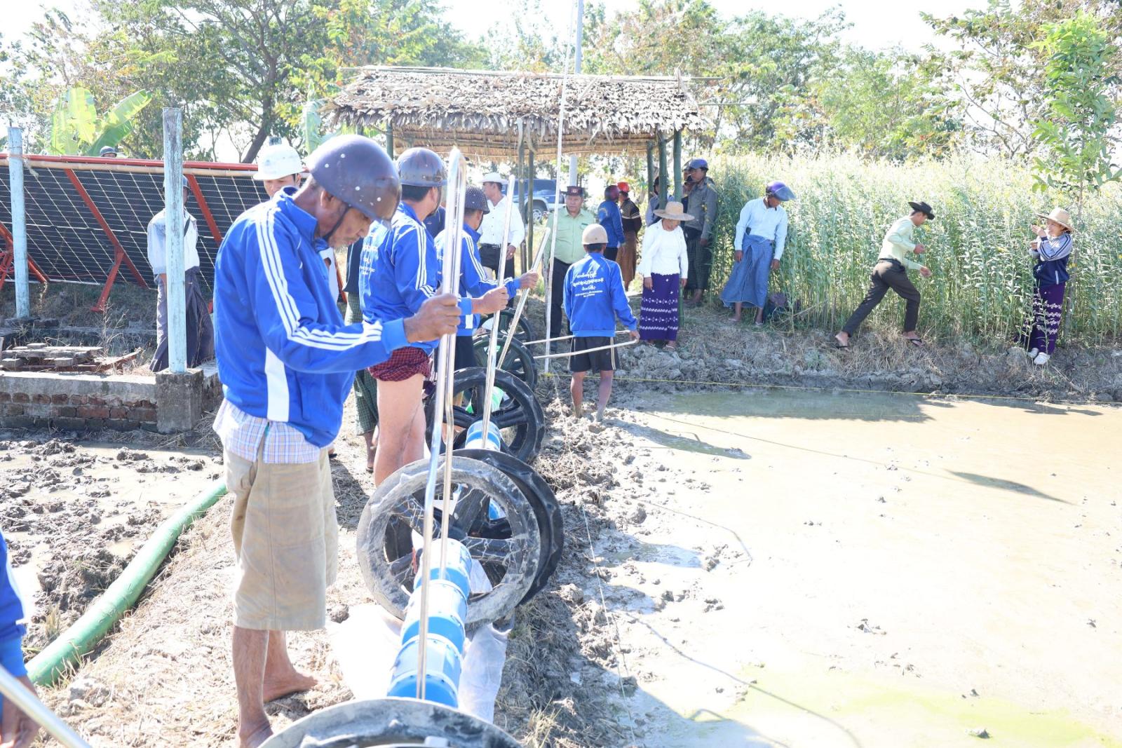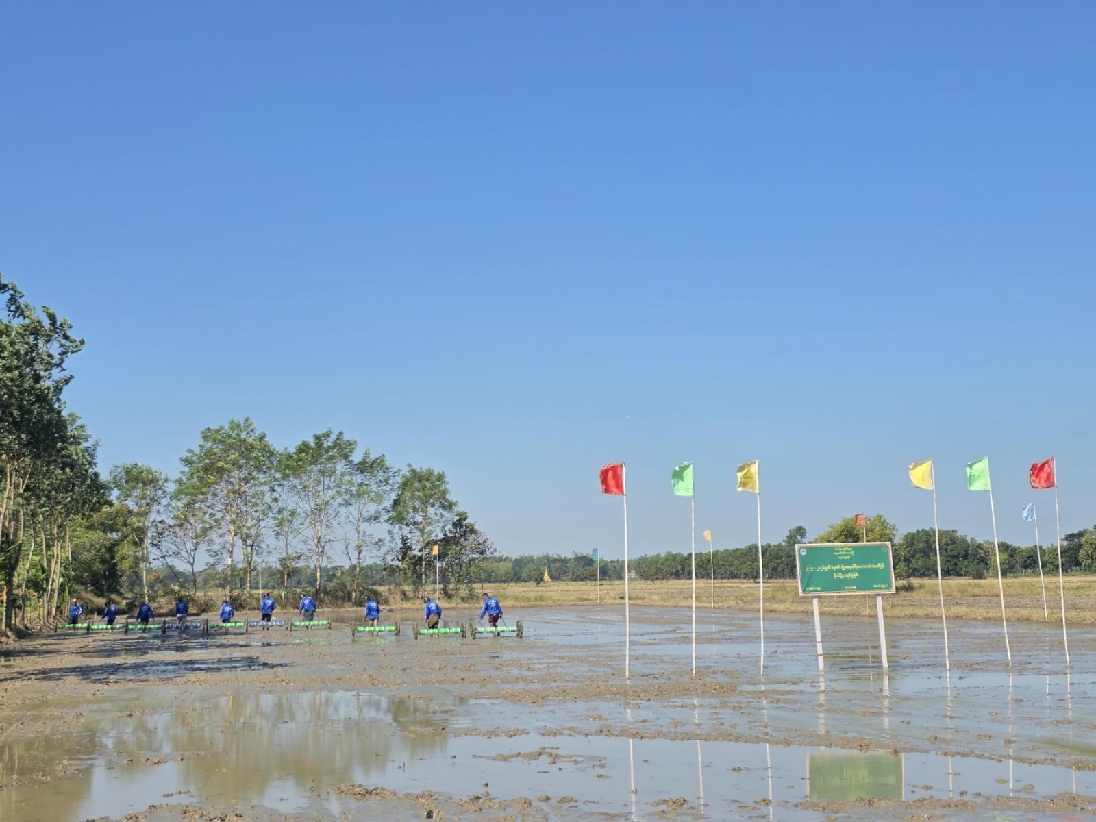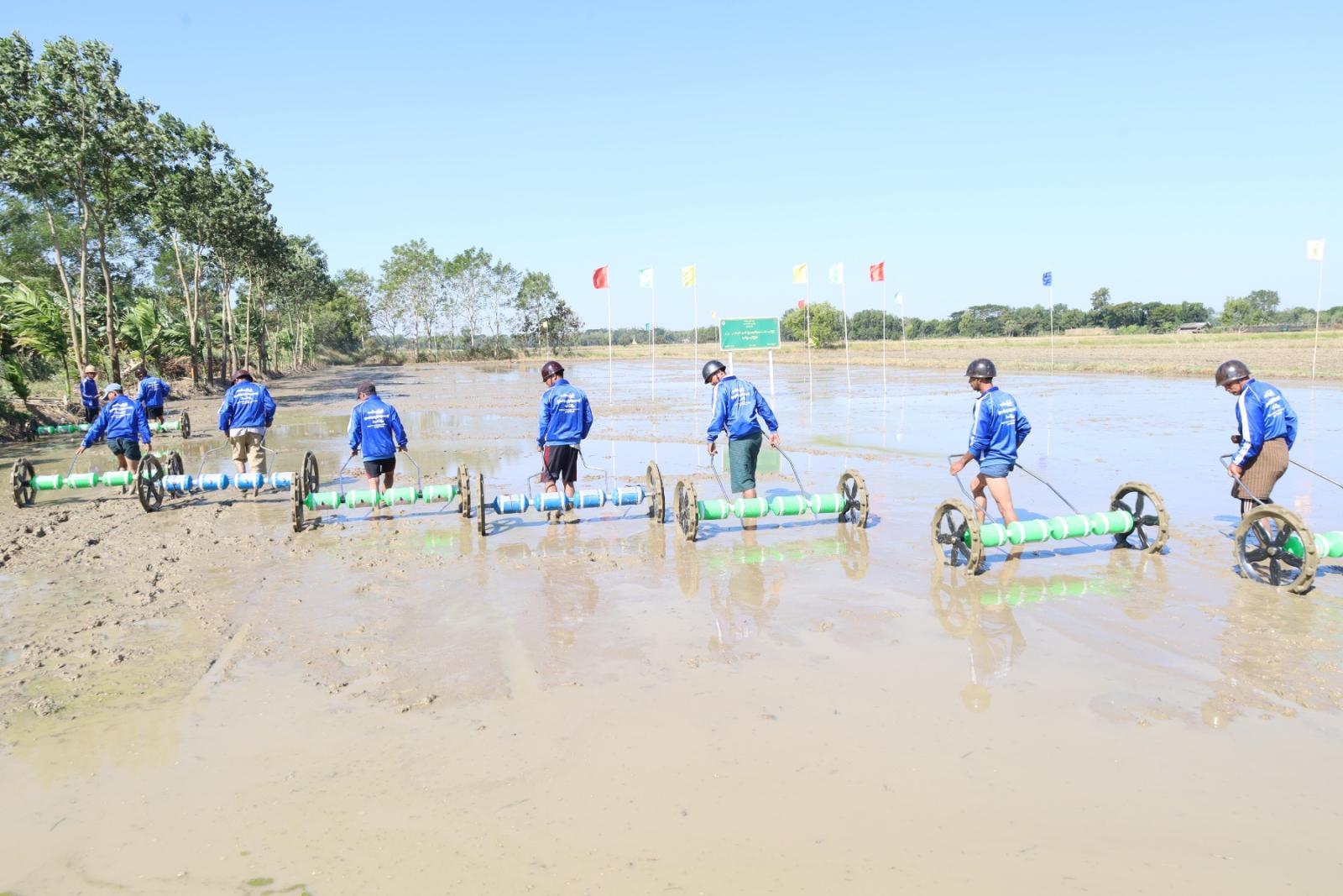 ဧရာဝတီတိုင်းဒေသကြီး၊ မြောင်းမြခရိုင်၊ ဝါးခယ်မမြို့နယ်၊ အူကျွန်းကျေးရွာရှိ ကွင်းအမှတ် ၁၀၁၅၊ ဦးပိုင်အမှတ် ၃၀/၂၊ တောင်သူ ဦးဘမြင့်၏ လယ်မြေ ၅.၀ဧကတွင် နွေစပါးအား မျိုးစေ့ချကိရိယာဖြင့် စိုက်ပျိုးခြင်း သရုပ်ပြပွဲကို ဒီဇင်ဘာလ ၁၃ ရက် နံနက် ၁၁ နာရီက ပြုလုပ်ခဲ့သည်။