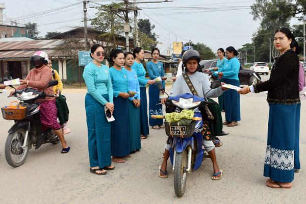ထို့နောက် တက်ရောက်လာသော ခရိုင်ပြန်ကြားရေးနှင့်ပြည်သူ့ဆက်ဆံရေးဦးစီးဌာနမှ ဝန်ထမ်းများ၊ ဌာနဆိုင်ရာတာဝန်ရှိသူများနှင့် လူမှုရေးအသင်းအဖွဲ့များက “ဒို့အတူတူ မဲပေးကြမယ်” ရွေးကောက်ပွဲလှုံ့ဆော်ရေးလက်ကမ်းစာစောင်များအား ပြည်သူများထံ လက်ဝယ်အရောက် ဖြန့်ဝေပေးခဲ့ကြကြောင်း သိရသည်။