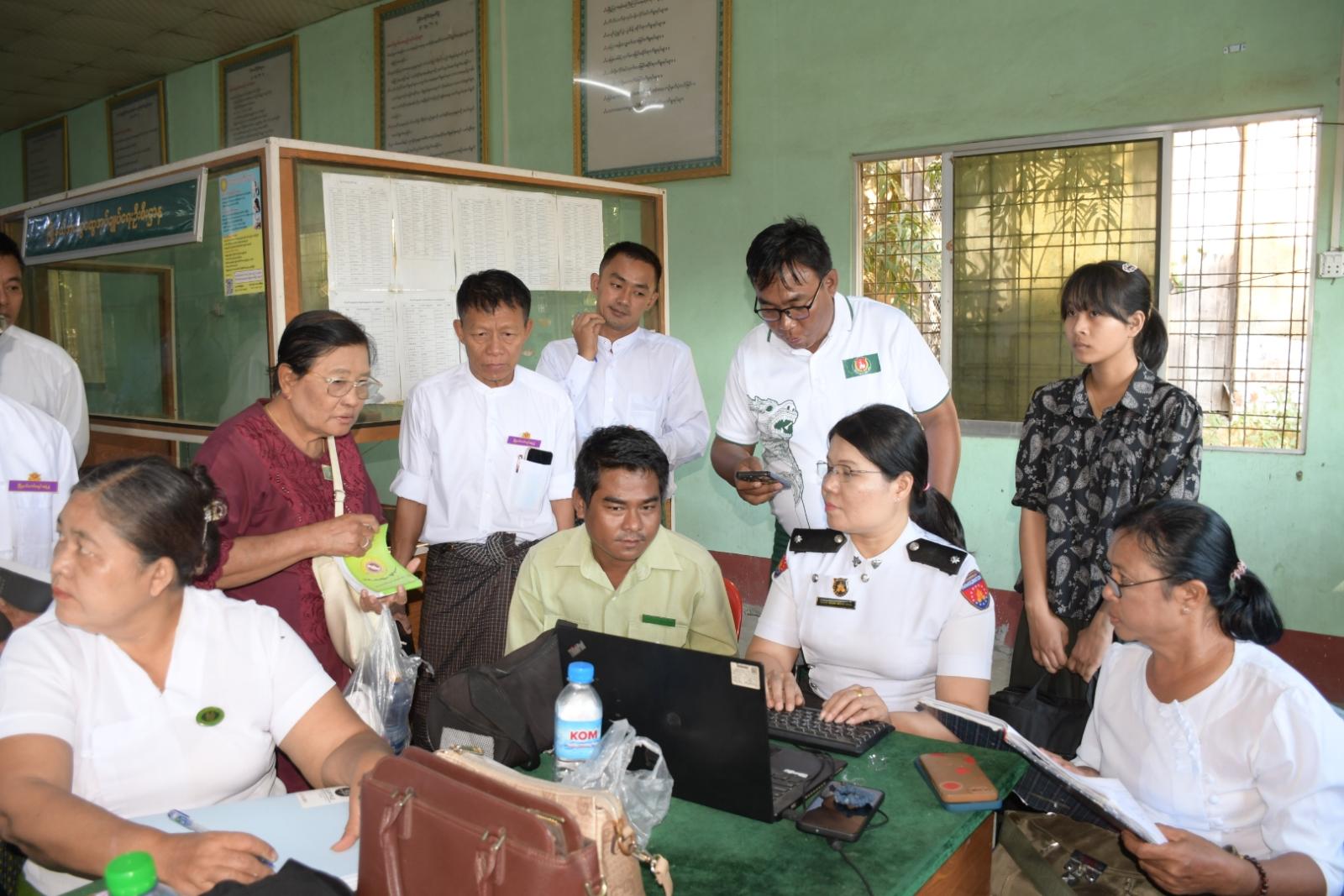 ပဲခူးတိုင်းဒေသကြီး၊ တောင်ငူခရိုင်အတွင်း တတိယအကြိမ် မဲဆန္ဒရှင်စာရင်းများ ကြေညာခြင်းမပြုမီ ပြည့်စုံမှန်ကန်စေရေးအတွက် ခရိုင်စီမံခန့်ခွဲရေးနှင့်အုပ်ချုပ်ရေး ကော်မတီဥက္ကဋ္ဌ ဦးစောထွန်းဦးနှင့် အဖွဲ့ဝင်များ ဦးဆောင်၍ မဲဆန္ဒရှင်စာရင်းများ စိစစ်စစ်ဆေးဆောင်ရွက်ခြင်းကို ယမန်နေ့ မွန်းလွဲပိုင်းက ခရိုင်အထွေထွေအုပ်ချုပ်ရေးဦးစီးဌာန ဝင်းအတွင်းရှိ နတ်သျှင်နောင်ခန်းမနှင့် ပြည်သူ့ဝန်ဆောင်မှုရုံးတို့၌ ဆောင်ရွက်သည်။