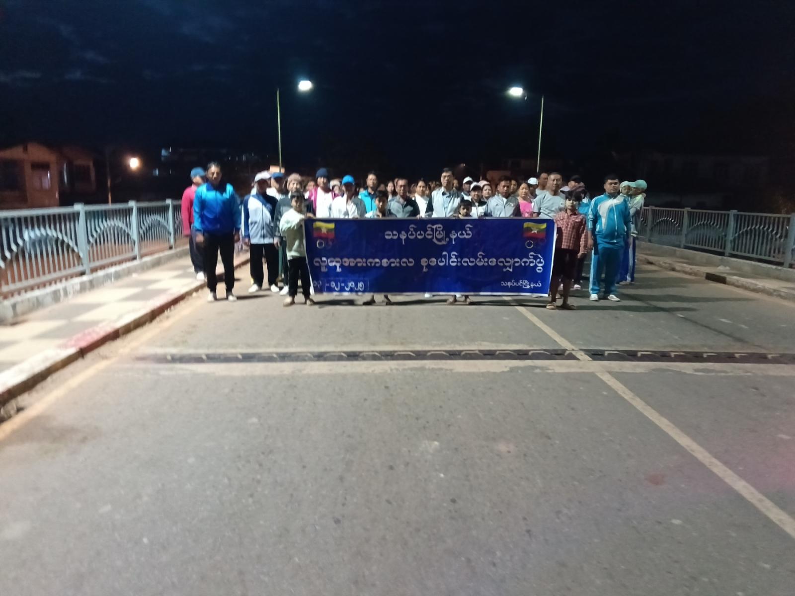 အဆိုပါ စုပေါင်းလူထုလမ်းလျှောက်ပွဲတွင် မြို့နယ်စီမံခန့်ခွဲရေးနှင့် အုပ်ချုပ်ရေးကော်မတီဥက္ကဋ္ဌ ဦးဝင်းသန်းနှင့်အဖွဲ့ဝင်များ၏ ဦးဆောင်မှုဖြင့် မြို့နယ်အားကစားမှူး ဦးကျော်သီဟထွန်းက ဦးဆောင်ပြီး ဒီဇင်ဘာ လူထုလမ်းလျှောက်သီချင်းဖြင့် ကိုယ်ကာယကြံ့ခိုင်ရေးလေ့ကျင့်ခန်း အတွဲ(၁)၊(၂)၊ physical fitness dance တို့ကို ဦးဆောင်ကပြခဲ့ပြီး ဌာနဆိုင်ရာဝန်ထမ်းများ၊ ဆရာ/ဆရာမများ၊ ကျောင်းသား၊ ကျောင်းသူများ၊ ရပ်ကွက်များအတွင်းမှ ဒေသခံပြည်သူ စုစုပေါင်းအင်အား (၃၀၀)ဦးကျော်ခန့်က ပျော်ရွှင်တက်ကြွစွာဖြင့် ပါဝင်ဆောင်ရွက်ကြပြီး မြို့နယ်အားကစားကွင်းအတွင်း၌ ပါဝင်လမ်းလျှောက်လာကြသူများအား ကျား/မ မီတာ (၁၀၀) အပြေးပြိုင်ပွဲ၊ လွန်ဆွဲပြိုင်ပွဲများ ယှဉ်ပြိုင်ပြီး ပထမ၊ ဒုတိယ၊ တတိယဆု ရရှိသူများအား တာဝန်ရှိသူများမှဆုများ အသီးသီးပေးအပ်ခဲ့ကြောင်း သိရသည်။