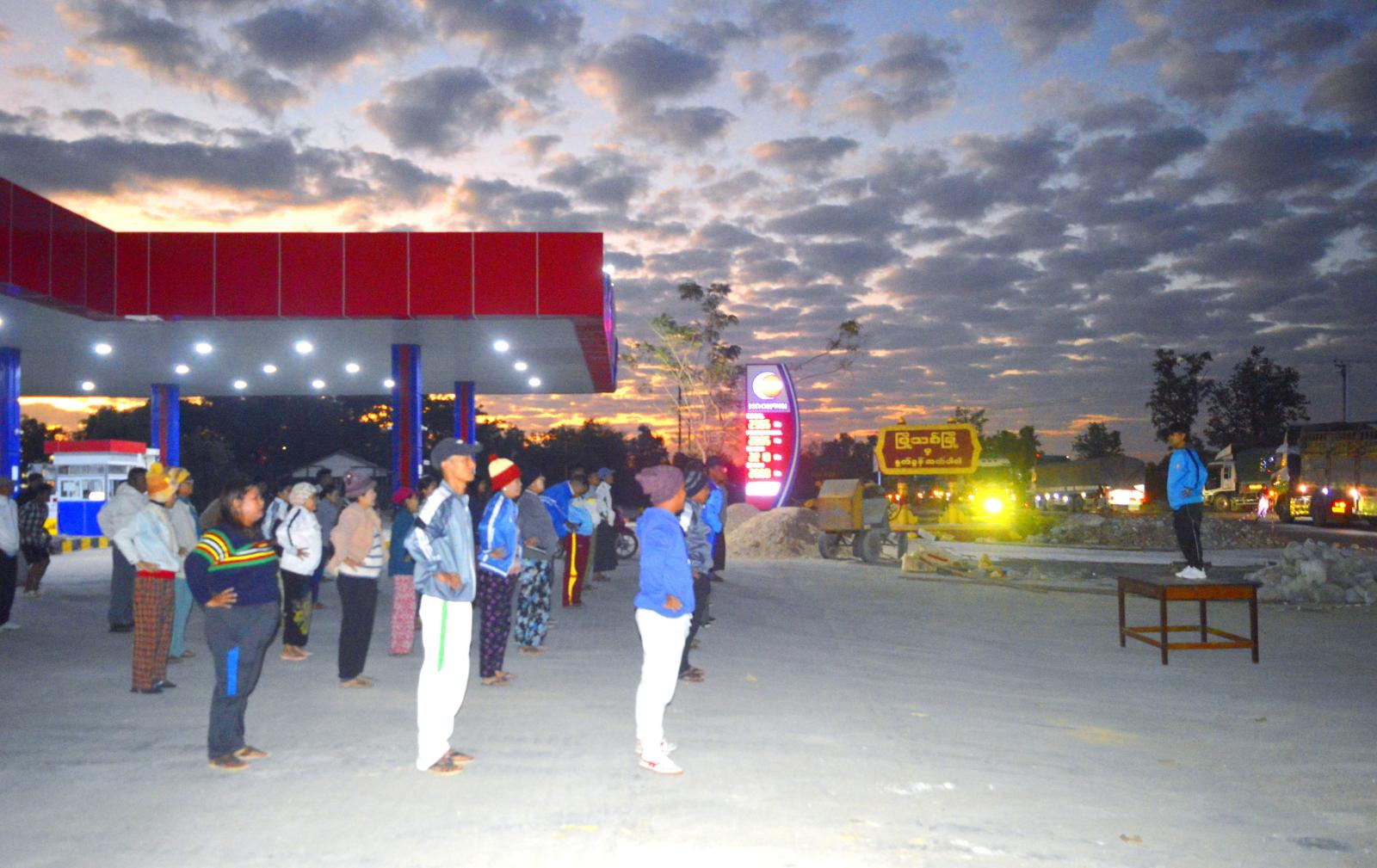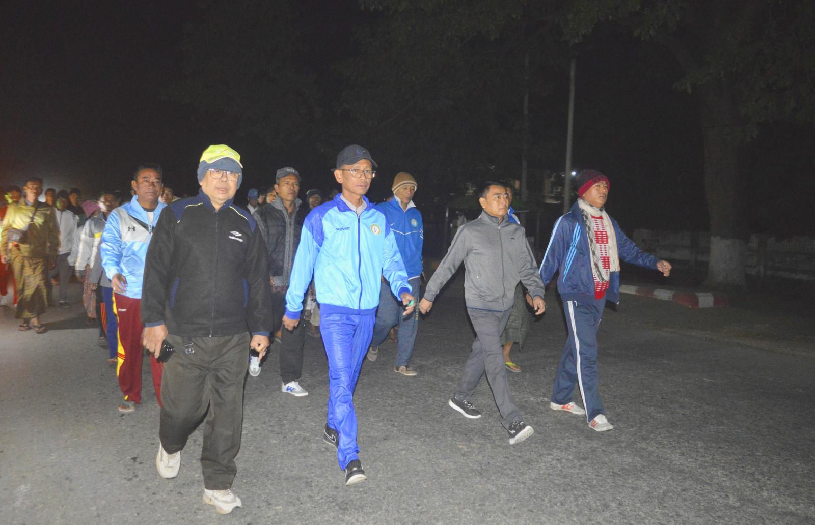 စုပေါင်းလမ်းလျှောက်ပွဲတွင် မြို့သစ်မြို့နယ်စီမံခန့်ခွဲရေးနှင့် အုပ်ချုပ်ရေးကော်မတီဥက္ကဋ္ဌ၊ မြို့နယ်အုပ်ချုပ်ရေးမှူး ဦးကျော်ဝင်ထက်နှင့်အဖွဲ့ဝင်များ၊ မြို့နယ်စီမံခန့်ခွဲရေးနှင့် အုပ်ချုပ်ရေးကော်မတီဥက္ကဋ္ဌ ဦးကျော်ဝင်းထက်နှင့်အဖွဲ့ဝင်များ၊ မြို့နယ်အဆင့်ဌာနဆိုင်ရာတာဝန်ရှိသူများနှင့် ဝန် ထမ်းများ၊ ဆရာ၊ ဆရာမများ၊ ရပ်ကွက်အုပ်ချုပ်ရေးမှူးများနှင့်အားကစားစိတ်ဝင်စားသည့် ပြည်သူများ စုစုပေါင်း ၃၀၀ ဦးက စုရပ်မှ စတင်လမ်းလျှောက်ခဲ့ကြပြီး-မြို့သစ်-တောင်တွင်းကြီးကားလမ်းနှင့် နေပြည်တော်ကံပြား-မကွေးကား လမ်းအဆုံအထိ စုပေါင်းလမ်းလျှောက်ခဲ့ကြပြီး အဆိုပါလမ်းဆုံရှိ စက်သုံးဆီရောင်းဝယ်ရေးဆိုင်ရှေ့၌ စုပေါင်းကိုယ်လက်ကြံ့ခိုင်ရေးလေ့ကျင့်ခန်းအတွဲ(၁)၊(၂)ဖြင့်ကိုယ်လက်လှုပ်ရှားဆောင်ရွက်ခဲ့ကြကြောင်း သိရသည်။