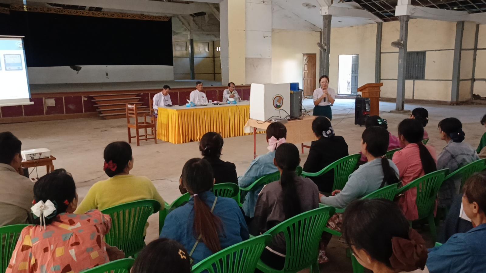ဆက်လက်၍ မဲရုံမှူး၊ ဒုတိယမဲရုံမှူး၊ မဲရုံအဖွဲ့ဝင်များ၏ မွမ်းမံသင်တန်းအား ပို့ချခဲ့ရာ မြို့နယ်ရွေးကောက်ပွဲကော်မရှင်အဖွဲ့ခွဲရုံးမှ ဦးစီးအရာရှိ ဒေါ်ခင်စုစုနှင်းက မဲရုံမှူး၊ ဒုတိယမဲရုံမှူး၊ ရပ်ကွက်/ကျေးရွာအုပ်စုကော်မရှင်အဖွဲ့ဝင်များ၏ တာဝန်နှင့် လုပ်ပိုင်ခွင့်များ၊ မဲပေးစက်တည်ဆောက်ပုံနည်းလမ်းများ၊ စက်တပ်ဆင်ပုံ၊ စမ်းသပ်မဲပေးပုံ၊ ရွေးကောက်ပွဲနေ့တွင် မဲရုံ၌ မဲပေးစက်တပ်ဆင်ခင်းကျင်းပုံ၊ မဲရလဒ်ရေတွက်ပုံ၊ နည်းဥပဒေပါအတိုင်း မဲရလဒ်စာရင်းပြုစုပုံ၊ မဲပေးစက်အား ပြန်လည်ထုပ်ပိုးသိမ်းဆည်းပုံနှင့် ရွေးကောက်ပွဲဆိုင်ရာ သိသင့်သိထိုက်မှုများကို ဥပဒေ၊ နည်းဥပဒေ၊ လုပ်ငန်းလမ်းညွှန်ချက်များနှင့်အညီ သင်ကြားပေးသွားမည်ဖြစ်ကြောင်းနှင့် သင်တန်းသား/ သင်တန်းသူ (၅၀၀) ဦး တက်ရောက်ခဲ့ကြကြောင်း သိရသည်။