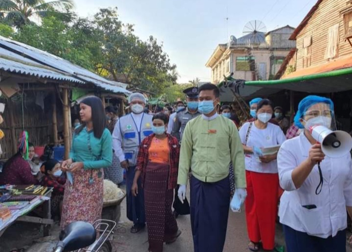 Mask များ ဖြန့်ဝေရာတွင် ဒုတိယ မြို့နယ်အုပ်ချုပ်ရေးမှူးနှင့် ဝန်ထမ်းများ၊ ဌာန ဆိုင်ရာများ၊ ကျန်းမာရေးဦးစီး ဌာနဝန်ထမ်းများ၊ မြို့နယ်ရဲတပ်ဖွဲ့၊ မြို့နယ်စည်ပင်သာယာရေးအဖွဲ့တို့ ပူးပေါင်းဆောင်ရွက်ခဲ့ကြပြီး ခရီးသွားပြည်သူများ၊ လမ်းသွားလမ်းလာများ၊ ဈေးသွားဈေးလာ လူထူထပ် သည့် နေရာများတွင် Mask ယူဆောင်အသုံးပြုတပ်ဆင်ခြင်း အလေ့အထရှိစေရေး၊ လမ်းသွား၊ လမ်းလာ ပြည်သူများ Mask တပ်ဆင်ခြင်းမရှိသူများအား Mask များ ဝယ်ယူ တပ်ဆင်စေခြင်း၊ ကိုဗစ်-၁၉ ရောဂါနှင့် ပတ်သက်သည့် အသိပညာပေးလက်ကမ်းစာစောင်များ ဖြန့်ဝေခြင်း၊ အသိပညာ ပေး ခြင်းများဖြင့် အရှိန်အဟုန်မြှင့် ပညာပေးဆောင်ရွက်ပေးလျက်ရှိကြောင်း သိရသည်။