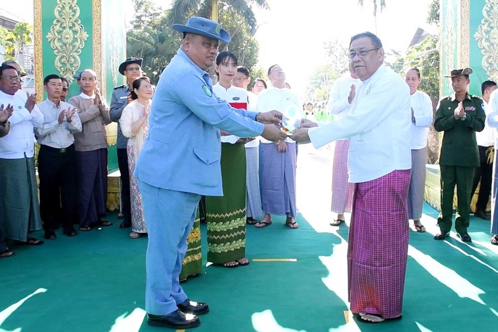 ထို့နောက်တိုင်းဒေသကြီးဝန်ကြီးချုပ်ဦးမြတ်ကို၊ တိုင်းဒေသကြီးတရားလွှတ်တော်တရားသူကြီးချုပ် ဒေါ်ပိုက်ပိုက်အေး၊ တိုင်းဒေသကြီးသယံဇာတရေးရာဝန်ကြီးဦးခင်မောင်မြင့် တို့က ထိန်သစ်ရပ်ကွက်၊ မဟာရွှေဂုဏ်ထူးလမ်း ကွန်ကရစ်လမ်းသစ်အား ဖဲကြိုးဖြတ်ဖွင့်လှစ်ပေးပြီး တိုင်းဒေသကြီးစည်ပင်သာယာရေးအဖွဲ့ ညွှန်ကြားရေးမှူးဦးသက်လွင်ဦးက တိုင်းဒေသကြီးဝန်ကြီးချုပ်အား အထိမ်းအမှတ်လက်ဆောင်ပေးအပ်သည်။