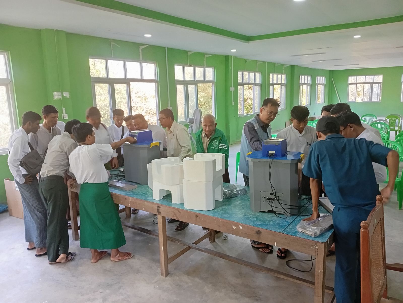 ဦးစွာ မြို့နယ်ရွေးကောက်ပွဲကော်မရှင်ဥက္ကဋ္ဌ ဦးမြင့်ဇော်နှင့် မြို့နယ်အထွေထွေအုပ်ချုပ်ရေးဦးစီးဌာနမှ ဒုတိယမြို့နယ်အုပ်ချုပ်ရေး ဦးသိန်းဇော်တို့က အမှာစကားပြောကြားပြီး သင်တန်းမြို့နယ်ကော်မရှင်ရုံးမှ ဒုတိယဦးစီးမှူး ဒေါ်စန်းစန်းစိုးက မဲပေးစက်ကိုင် တာဝန်ကျဝန်ထမ်းများ၏ တာဝန်နှင့်လုပ်ငန်းစဉ်များကို ရှင်းလင်းဆွေးနွေးပြီး မဲပေးစက်တပ်ဆင် အသုံးပြုပုံအဆင့်ဆင့်ကို အဖွဲ့လိုက်လက်တွေ့သရုပ်ပြ ရှင်းလင်းပြသသည်။ အဆိုပါသင်တန်းသို့ သင်တန်းသားသင်တန်းသူ (၅၀)ဦး တက်ရောက်ခဲ့ကြကြောင်း သိရသည်။