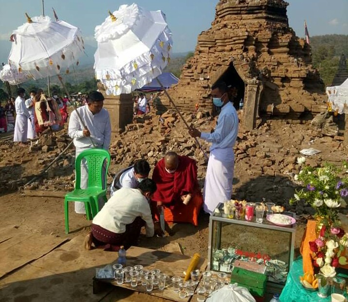 ထိုသို့ ဆောင်ရွက်ရာတွင် ဆရာတော်၊ သံဃာတော်များက စေတီပတ်ပတ်လည်အား စေတီပြန်လည် ပြုပြင်မွမ်းမံရန် အတွက် ခွင့်ပန်ကြားခြင်း၊ ပရိတ်တရားတော်များ ရွတ်ဖတ်ပူဇော်ခြင်းများကို ပန္နက်တင်အခမ်းအနား ပြုလုပ်ခဲ့ကာ စေတနာရှင် အလှူရှင်များကလည်း ဆွမ်းဆန်စိမ်း လောင်းလှူပွဲ ကျင်းပခဲ့ကြောင်း သိရသည်။