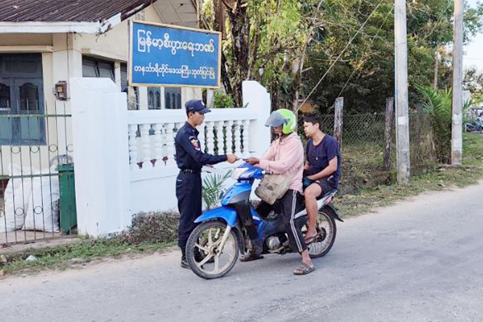 အသိပညာပေးဆောင်ရွက်ရာတွင် မြို့နယ်အထွေထွေအုပ်ချုပ်ရေးဦးစီးဌာနမှ ဒုတိယမြို့နယ်အုပ်ချုပ်ရေးမှူး၊ မြို့နယ်ရဲတပ်ဖွဲ့ဝင်များ၊ မြို့နယ်မီးသတ်ဦးစီးမှူးနှင့်ဌာနဆိုင်ရာများ၊ သန္ဓေ၊ အရန်မီးသတ်တပ်ဖွဲ့ဝင်များ၊ ရပ်ကွက်အုပ်ချုပ်ရေးအဖွဲ့ဝင်များက မြို့အဝင်အထွက်ဂိတ်နှင့် မြို့ပေါ်ရပ်ကွက်များတွင် မော်တော်ဆိုင်ကယ်၊ မော်တော် ကား စီးနင်းမောင်နှင်သူများ၊ ခရီးသွားလာနေသူများ၊ ဒေသခံပြည်သူများအား မီးသတ်ဦးစီးဌာနမှ ထုတ်ဝေထားသည့် မီးဘေးလုံခြုံရေးပညာပေးလက်ကမ်းစာစောင်များ အသိပညာပေး ဆောင်ရွက်လျက်ရှိကြောင်း သိရသည်။