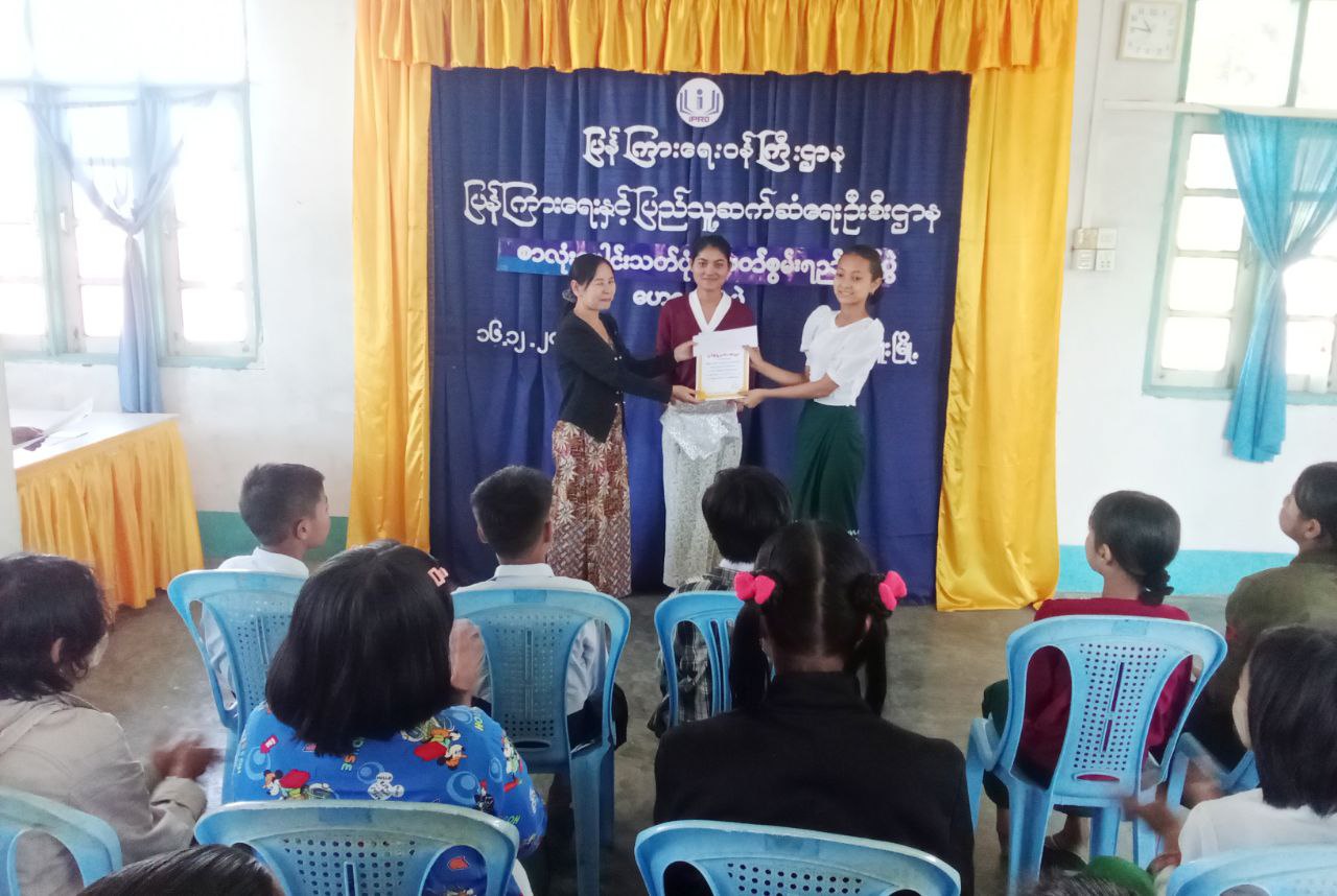 ဆက်လက်၍ ဖြူးမြို့နယ် ပြန်ကြားရေးနှင့်ပြည်သူ့ဆက်ဆံရေးဦးစီးဌာန၊ ဒုတိယဦးစီးမှူး ဒေါ်နွယ်နွယ်အေးက ကျောင်းသား/သူများအား သဘာဝဘေးအန္တရာယ်ဆိုင်ရာအကြောင်း အသိပညာပေးဟောပြော၍ စာဖတ်စွမ်းရည်ပြိုင်ပွဲ ပြုလုပ်ပေးခဲ့ကြောင်း သိရသည်။