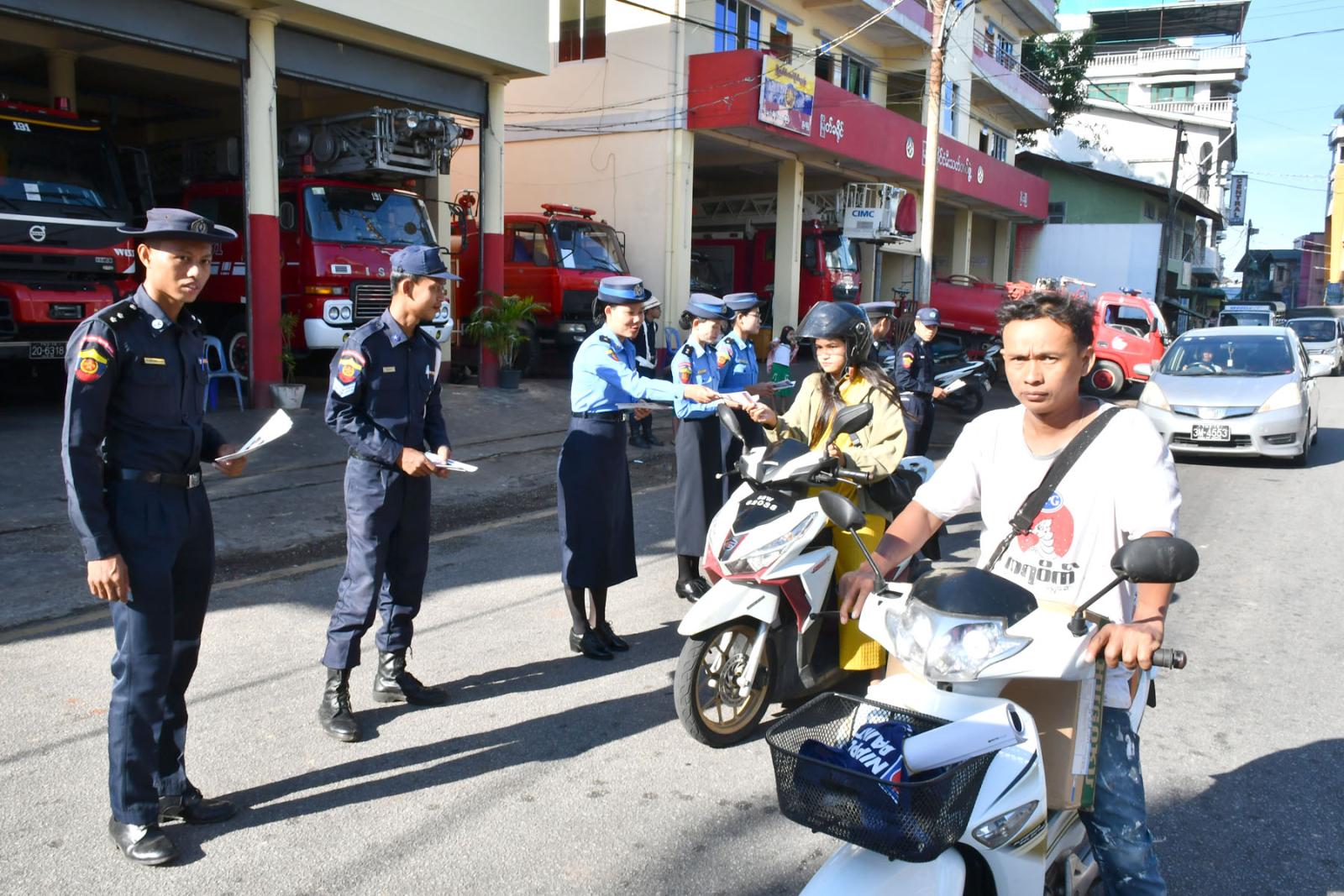 မြိတ်မြို့နယ်အတွင်း ပြည်သူများ မီးသတိမူရေး၊ မီးဘေးကြိုတင်ကာကွယ်နိုင်စေရေးအတွက် မီးသတ်ဦးစီးဌာနမှ မီးဘေးလုံခြုံရေး ပညာပေးလက်ကမ်းစာစောင် ဝေငှ