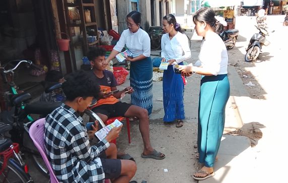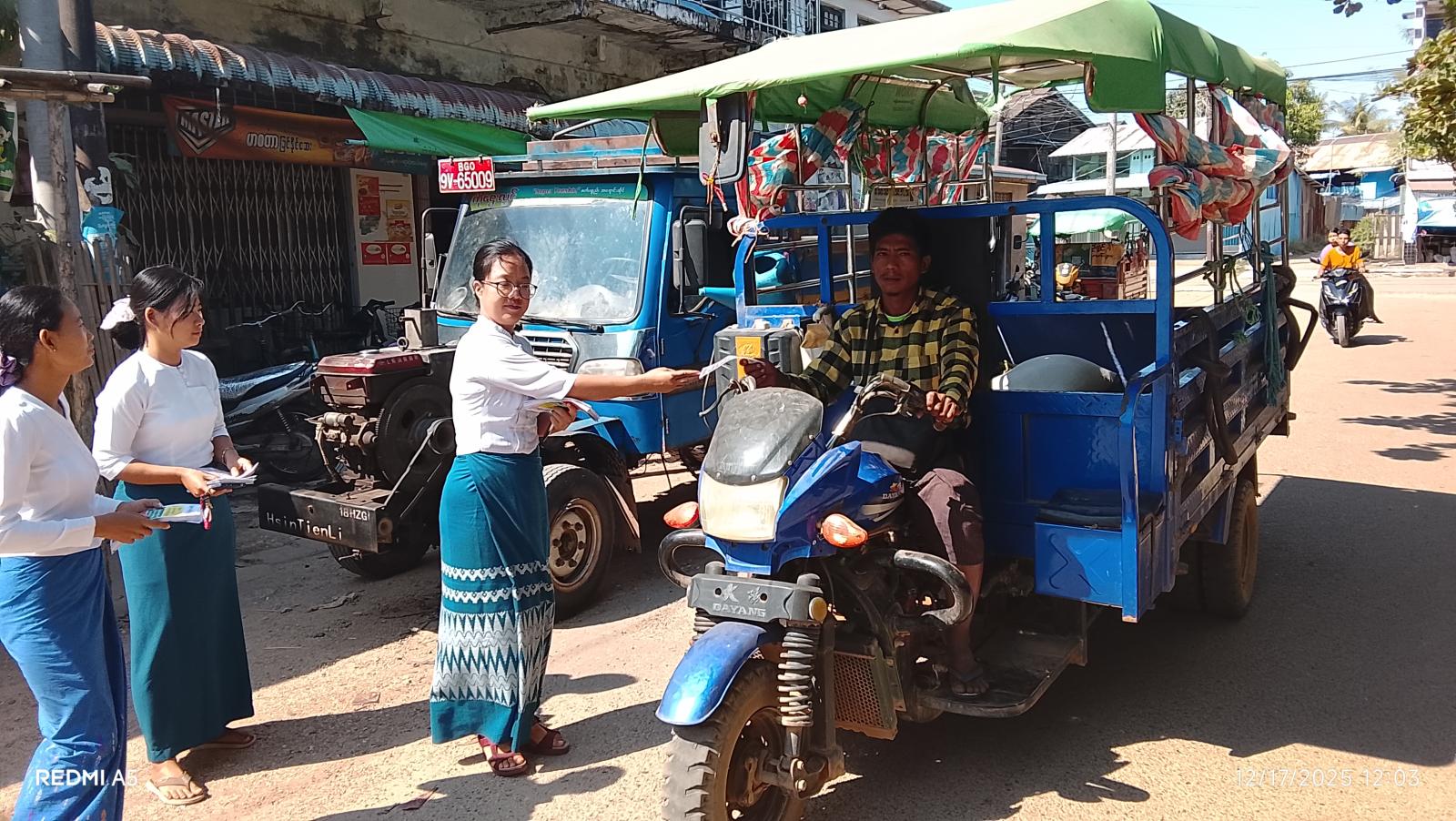 ထိုသို့ ဆောင်ရွက်ကြရာ၌ မြို့နယ်အတွင်းလူစည်ကားရာနေရာ ဈေး(၁)၊ ဈေး(၂)ရပ်ကွက်များအတွင်းရှိ လမ်းမများတွင် သွားလာနေကြသော ပြည်သူများအား ဖြန့်ဝေပေးခဲ့ကြပြီး မြို့မဈေးအတွင်း၌လည်း ဈေးရောင်း/ဈေးဝယ် ပြည်သူများအား ဆက်လက်ဖြန့်ဝေ ပေးခဲ့ကြကြောင်း သိရသည်။