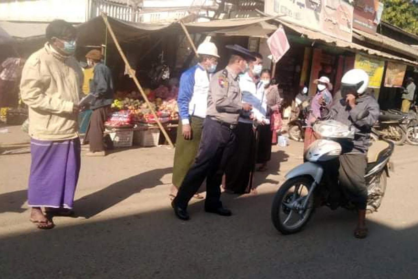 မကွေးတိုင်းဒေသကြီး ရေနံချောင်းမြို့ယာဉ်ထိန်းရဲတပ်ဖွဲ့မှ နေအိမ်ပြင်ပ ထွက်ခွာသွား လာသူများအား ကိုဗစ်-၁၉ ရောဂါက ကြိုတင်ကာကွယ်ရေးအတွက် နှားခေါင်းစည်း (Mask) များ ဖြန့်ဝေခြင်းနှင့် ယာဉ်စည်းကမ်း လမ်းစည်းကမ်း အသိပညာပေး လက်ကမ်းစာစောင်များ ဖြန့်ဝေ ပေးခြင်းကို ယမန်နေ့ နံနက်ပိုင်းက မြို့မစျေးနှင့် ရတနာဈေးထိပ်လမ်းဆုံ၌ ဆောင်ရွက်ခဲ့ ကြောင်း သိရသည်။