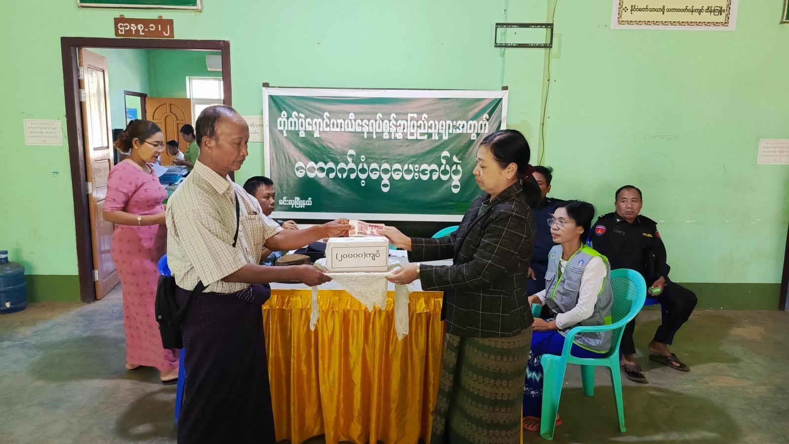 ပဲခူးတိုင်းဒေသကြီး၊သာယာဝတီခ ရိုင်၊မင်းလှမြို့နယ်တွင် အကြမ်းဖက်ဖြစ်စဉ်များကြောင့် ယာယီနေရပ်စွန့်ခွာပြည်သူတစ်ဦးလျှင်(၂၀၀၀၀) ကျပ်နှုန်းစီပေးအပ်ခြင်းကို ဒီဇင်ဘာ ၁၇ ရက် နေ့လယ်ပိုင်းက မြို့နယ်အထွေထွေအုပ် ချုပ်ရေးဦးစီးဌာနရုံး၌ ဆောင်ရွက်သည်။
