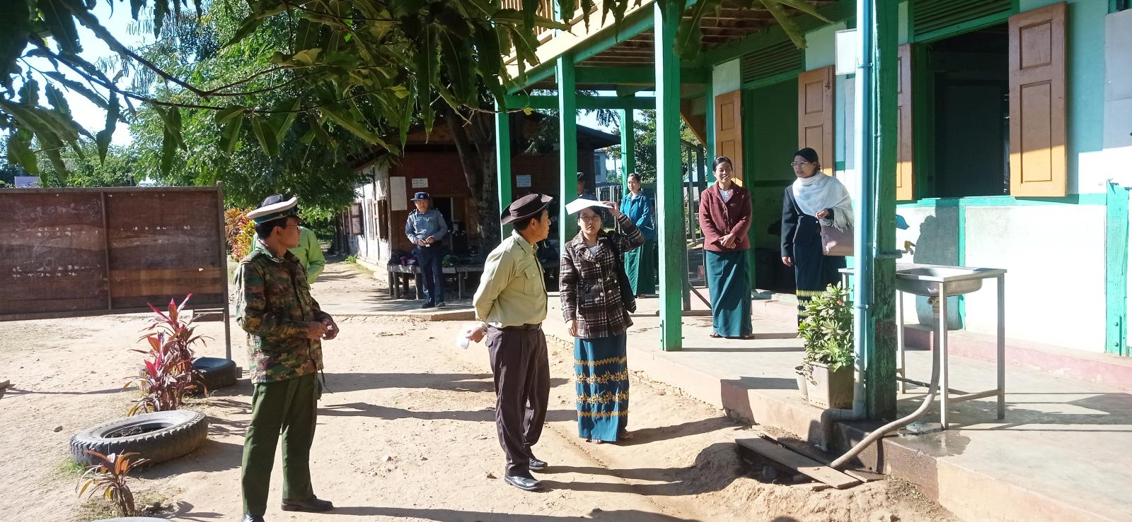 ထိုသို့ ကွင်းဆင်းစစ်ဆေးရာတွင် ခရိုင်စီမံခန့်ခွဲရေးနှင့်အုပ်ချုပ်ရေးကော်မတီဥက္ကဋ္ဌ ဦးကျော်စွာထွန်းနှင့် အဖွဲ့ဝင်များ၊ မြို့နယ်စီမံခန့်ခွဲရေးနှင့်အုပ်ချုပ်ရေးကော်မတီဥက္ကဋ္ဌ ဦးသန်းထွန်းနှင့်အဖွဲ့ဝင်များ၊ ခရိုင်/ မြို့နယ် ရွေးကောက်ပွဲကော်မရှင်အဖွဲ့ခွဲဥက္ကဋ္ဌနှင့်အဖွဲ့ဝင်များ၊ ခရိုင်/မြို့နယ်ဌာနဆိုင်ရာ တာဝန်ရှိသူများ၊ ရပ်ကွက်/ကျေးရွာ အုပ်ချုပ်ရေးမှူးများ၊ ဆရာ/ဆရာမများနှင့်တွေ့ဆုံ၍ ရွေးကောက်ပွဲအတွက် မဲရုံများဖွင့်လှစ်ဆောင်ရွက်မည့် အခြေခံပညာကျောင်းများရှိ စာသင်ခန်းများ အလင်းရောင်ကောင်းမွန်စွာရရှိမှု၊ ရေ၊ မီးပြည့်စုံကောင်းမွန်မှု ရှိ/မရှိ၊ မဲရုံနေရာကျယ်ဝန်းမှုနှင့် မီးဘေးအန္တရာယ် ကြိုတင်ကာကွယ်ရေးအခြေအနေများကို ကြည့်ရှုခဲ့သည်။