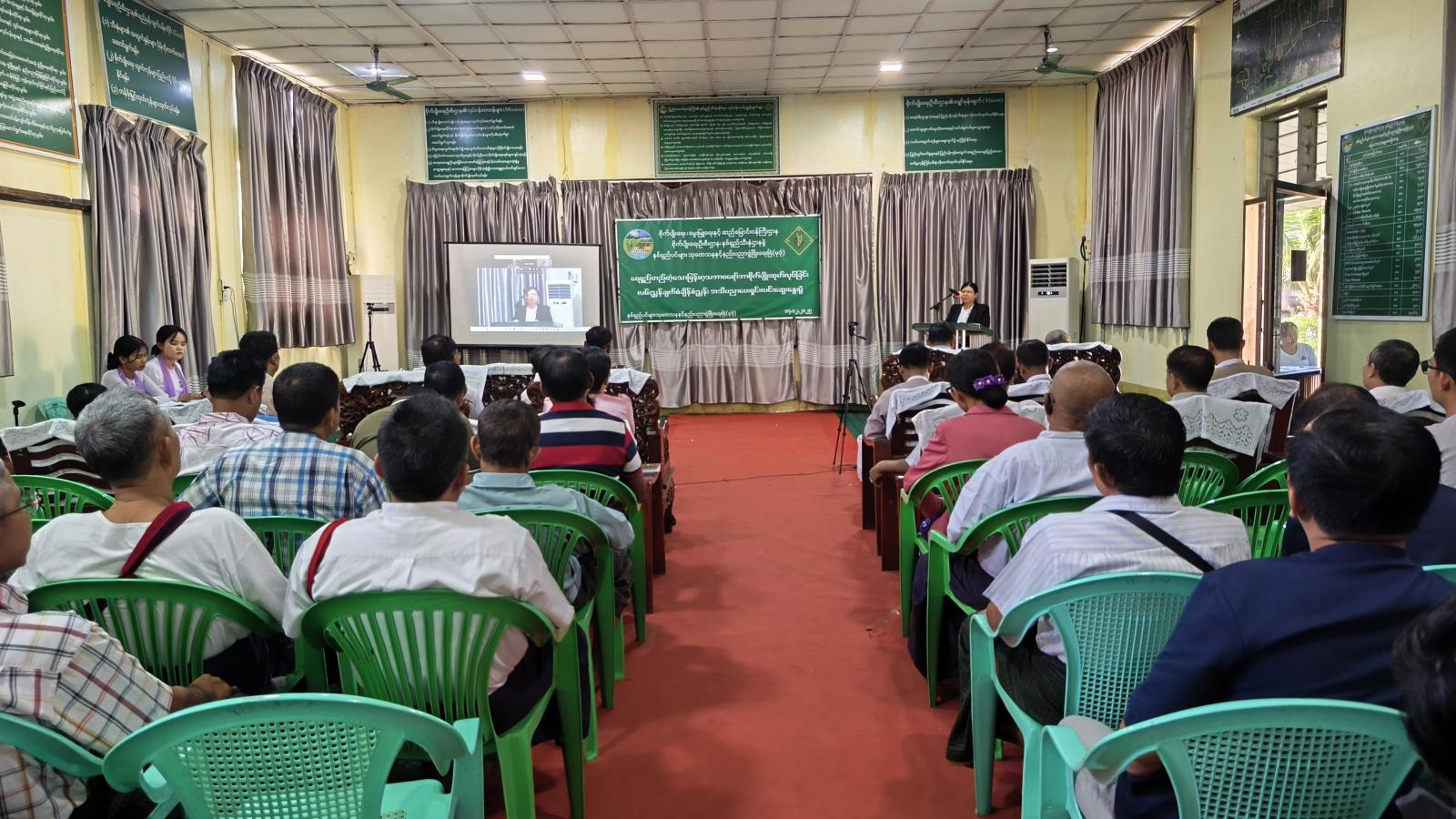 ဦးစွာ နှစ်ရှည်ပင်များသုတေသနနှင့်နည်းပညာဖွံ့ဖြိုးရေးဌာန (မော်လမြိုင်) ဒုတိယညွှန်ကြားရေးမှူး ဒေါ်စမ်းစမ်းတင့်က အဖွင့်အမှာစကားပြောကြားပြီး နှစ်ရှည်သီးနှံဌာနခွဲ (ရုံးချုပ်) နေပြည်တော်မှ ဒုတိယညွှန်ကြားရေးမှူး ဒေါ်အေးမြင့်က ရည်ရွယ်ချက်များကိုပြောကြားသည်။ ထို့နောက် မြန်မာ့သဘာဝရော်ဘာ ရေရှည်တည်တံ့မှု ဖော်ဆောင်ရေးအသင်းဥက္ကဋ္ဌ ဒေါက်တာယုစိန်က ရေရှည်တည်တံ့သော သဘာဝရော်ဘာ စိုက်ပျိုးထုတ်လုပ်မှုနှင့်သက်ဆိုင်သည့် အသိအမှတ်ပြုလက်မှတ်ရရှိရေးဆိုင်ရာများ၊ တာဝန်ရှိသူများက မြေယာအသုံးချမှုမှန်ကန်ရေးကဏ္ဍ၊ ရော်ဘာစိုက်ပျိုးရေး ထုတ်လုပ်မှုမြင့်မားစေရေးကဏ္ဍ၊ လူ့အခွင့်အရေးကာကွယ်စောင့်ရှောက်မှုနှင့် ရော်ဘာခြံငယ်များ၏ လူမှုဖူလုံရေးကဏ္ဍ၊ သဘာဝပတ်ဝန်းကျင်ထိန်းသိမ်းခြင်း ကဏ္ဍအကြောင်းအရာများကို ရှင်းလင်းဆွေးနွေးခဲ့သည်။
