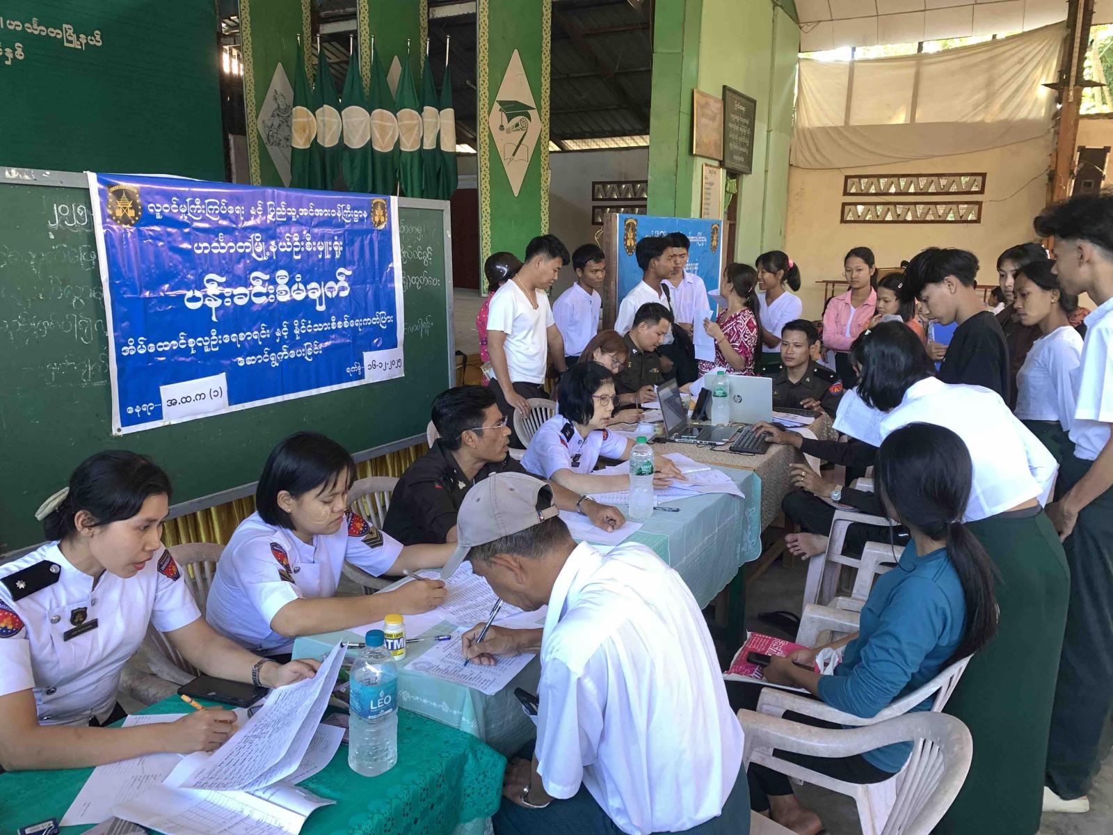 ဧရာဝတီတိုင်းဒေသကြီး၊ ဟင်္သာတခရိုင်၊ ဟင်္သာတမြို့နယ်တွင် အခြေခံပညာကျောင်းများတွင် ပညာသင်ကြားလျက်ရှိသော အသက် ၁၈ နှစ်ပြည့် ကျောင်းသား၊ ကျောင်းသူများအား နိုင်ငံသားစိစစ်ရေး ကတ်ပြားများနှင့် နိုင်ငံသားကိုယ်ရေးအချက်အလက် EID များအား ပန်းခင်းစီမံချက်ဖြင့်ယမန်နေ့ နံနက်ပိုင်းမှစတင်ကာ ကွင်းဆင်းဆောင်ရွက်ပေးခဲ့ကြသည်။