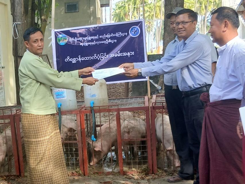 မွေးမြူရေးလုပ်ငန်းဖွံ့ဖြိုးတိုးတက်ရေးအတွက် စိုက်ပျိုးရေး၊ မွေးမြူရေးနှင့်ဆည်မြောင်းဝန်ကြီးဌာနနှင့် ရန်ကုန်တိုင်းဒေသကြီးအစိုးရအဖွဲ့တို့၏ လမ်းညွှန်မှုအရ မျိုးကောင်းမျိုးသန့် DYL ဝက်မျိုးများကို ဒီဇင်ဘာ ၁၆ ရက်နံနက်ပိုင်းက ရန်ကုန်တိုင်းဒေသကြီး၊ သန်လျင်ခရိုင်၊ ကိုကိုးကျွန်းမြို့နယ်ရှိ မွေးမြူသူများထံ ပေးအပ်သည်။