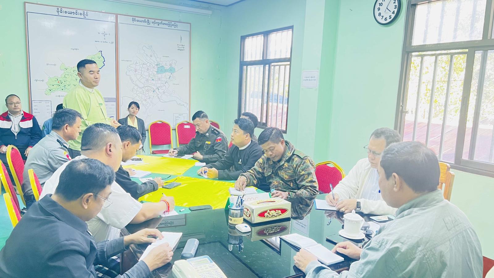 ထို့နောက် မြို့နယ်စီမံခန့်ခွဲရေးအုပ်ချုပ်ရေးကော်မတီဥက္ကဋ္ဌ မြို့နယ်အုပ်ချုပ်ရေးမှူး ဦးစိုးသက်ဆွေသည် ရှမ်းပြည်နယ်အစိုးရအဖွဲ့၊ လုံခြုံရေးနှင့်နယ်စပ်ရေးရာဝန်ကြီးက ဦးဆောင်ကျင်းပသည့် ပြည်သူ့စစ်မှုထမ်းလုပ်ငန်း အစည်းအဝေးကို Video Conferencing ဖြင့်တက်ရောက်ပြီး ခရိုင်စီမံခန့်ခွဲရေးအုပ်ချုပ်ရေးကော်မတီဥက္ကဋ္ဌ ခရိုင်အုပ်ချုပ်ရေးမှူးရုံးခန်းတွင် သတင်းညှိနှိုင်းအစည်းအဝေးအား တက်ရောက်ခဲ့ကြောင်း သိရသည်။
