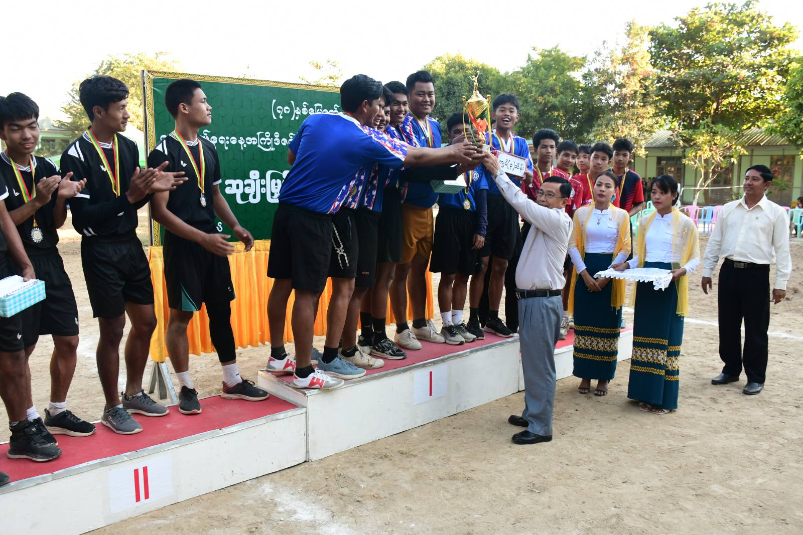 မွန်းလွဲပိုင်းတွင် အခြေခံပညာဦးစီးဌာနနှင့် အားကစားနှင့်ကာယပညာဦးစီးဌာနတို့ပူးပေါင်း၍ (၇၈) နှစ်မြောက်လွတ်လပ်ရေးနေ့အထိမ်းအမှတ်ဘောလီဘောပြိုင်ပွဲဗိုလ်လုပွဲနှင့်ဆုချီးမြှင့်ပွဲကို ဇမ္ဗူသီရိမြို့နယ် အမှတ်(၃) အခြေခံပညာအထက်တန်းကျောင်း(ခွဲ)၌ ကျင်းပရာ အခမ်းအနားသို့ နေပြည်တော်ကောင်စီဥက္ကဋ္ဌနှင့် တာဝန်ရှိသူများတက်ရောက်၍ ပထမဆုရရှိခဲ့သည့် ကျန်စစ်သားအသင်းအား တံခွန်စိုက်ဖလားနှင့် ဂုဏ်ပြုချီးမြှင့်ငွေများပေးအပ်သည်။ ဆက်လက်၍ နေပြည်တော်ကောင်စီဝင်များနှင့် တာဝန်ရှိသူများက ဒုတိယနှင့် တတိယဆုရရှိသည့်အသင်းများအား ဆုတံဆိပ်ဆွဲပြားနှင့် ဂုဏ်ပြုဆုငွေ၊ ပထမဆုရရှိသည့်အသင်းအား ဆုတံဆိပ်ဆွဲပြားကိုလည်းကောင်း ပေးအပ်ချီးမြှင့်ခဲ့ကြောင်း သိရသည်။