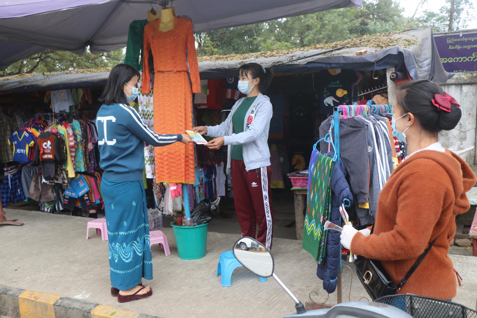 ထိုသို့ ဖြန့်ဝေပေးရာတွင် မြို့နယ်ပြန်ကြားရေးနှင့်ပြည်သူ့ဆက်ဆံရေးဦးစီးဌာနမှ မြို့နယ်ဦးစီးမှူး ဦးရှော လမွန်နှင့် ဝန်ထမ်းများက ယာယီပျံကျစျေးနှင့် ပြည်ထောင်စုလမ်းမကြီးဘေးတို့ရှိ စျေးရောင်းစျေး ဝယ်များ၊ တက်စီဂိတ် များတွင် ပြန်ကြားရေးနှင့်ပြည်သူ့ဆက်ဆံရေး ဦးစီးဌာနက ထုတ်ဝေသည့် (၇၃)နှစ် မြောက် လွတ်လပ်ရေးနေ့ အထိမ်းအမှတ် “သတင်းစကား” လက်ကမ်းစာစောင်များကို ဖြန့်ဝေ ပေးခဲ့ ကြောင်း သိရသည်။