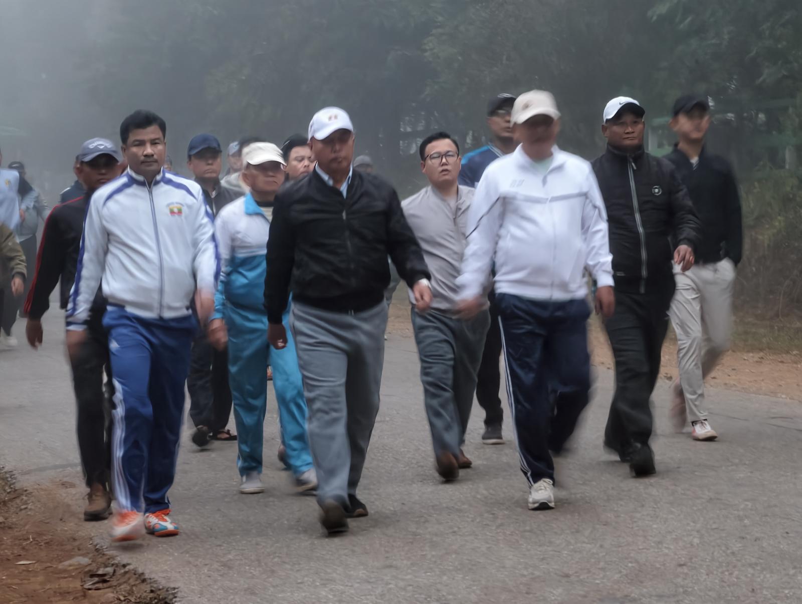 အဆိုပါစုပေါင်းလမ်းလျှောက်ပွဲကို ယနေ့နံနက် (၅)နာရီက (လင်းခေး-မို့းနဲ-နမ့်စန်)သွားလမ်း၊ မြို့မလမ်းဆုံနေရာမှ စုရပ်ပြု၍ စတင်ကျင်းပခဲ့ပါသည်။
