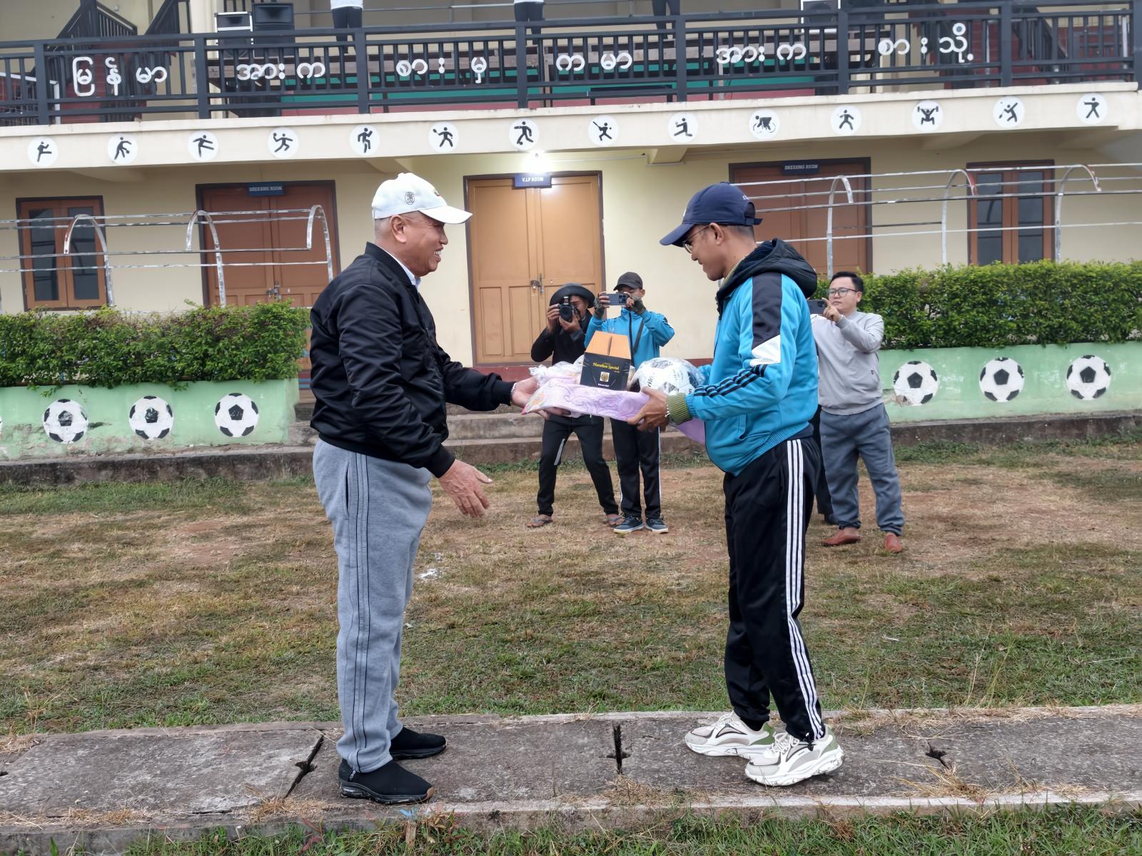 ဆက်လက်ပြီး ဝန်ကြီးက အားကစားပစ္စည်းများပေးအပ်ရာ တပ်နယ်(လင်းခေး)မှ တာဝန်ရှိသူက လက်ခံရယူခဲ့ပါသည်။