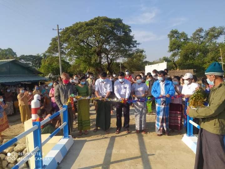 အခမ်းအနားတွင် ကျောက်တန်းမြို့နယ် ကျေးလက်ဒေသဖွံ့ဖြိုးတိုးတက်ရေးဦးစီးဌာန မြို့နယ်ဦးစီးမှူး ဦးထွန်းဝင်းလတ်၊ ကျေးရွာအုပ်ချုပ်ရေးမှူး ဦးထွန်းဝေ၊ ရာအိမ်မှူး ဦးလှဟန် ၊ ကျေးရွာစီမံကိန်း အထောက်အကူပြု ကော်မတီဝင် ဦးမောင်အေးတို့က ဖဲကြိုးဖြတ်ဖွင့်လှစ်ခဲ့ကြပြီး တံတားတည် ဆောက်ရေးတွင် လိုအပ်သည့်အလှူငွေ များ ထည့်ဝင်လှူဒါန်းသည့် အလှူရှင်များအား ဂုဏ်ပြုမှတ်တမ်း လွှာများ ပြန်လည်ပေးအပ်ချီးမြှင့်ခဲ့ကြောင်း သိရသည်။