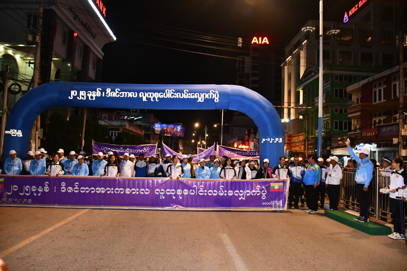 ကိုယ်လက်လှုပ်ရှားအားကစား ကျန်းမာရေးလေ့ကျင့်ခန်းများ ဆောင်ရွက်ခြင်းဖြင့် တစ်ဦးတစ် ယောက်ချင်းစီမှသည် တစ်မျိုးသားလုံးကျန်းမာကြံ့ခိုင်လာစေရေး ၂၀၂၅ ခုနှစ် ဒီဇင်ဘာလူထု အားကစားလစုပေါင်းလူထုလမ်းလျှောက်ပွဲကို ဒီဇင်ဘာ ၂၀ ရက် နံနက် ၅ နာရီ ၄၅ မိနစ်က ကမ္ဘောဇဘဏ်ရှေ့တွင် စုရပ်ထား၍ကျင်းပရာ ပြည်နယ်ဝန်ကြီးချုပ် နှင့်တာဝန်ရှိသူများ ပါဝင်ဆင်နွှဲခဲ့ကြသည်။