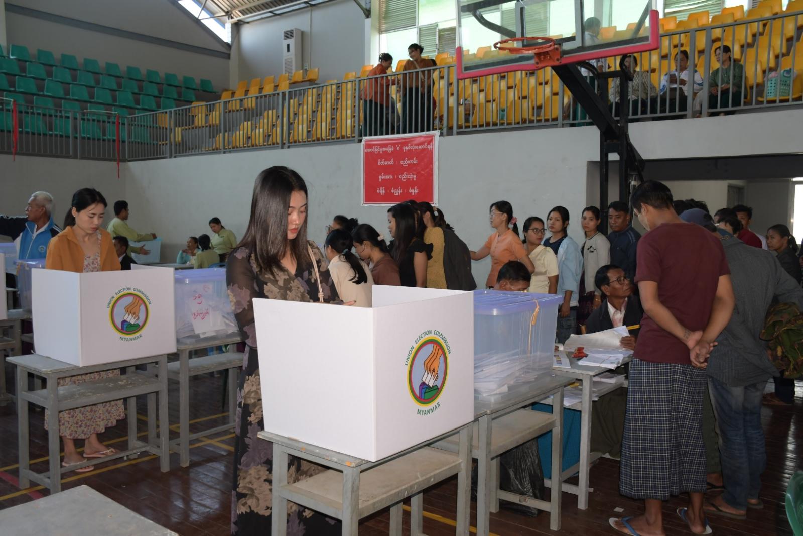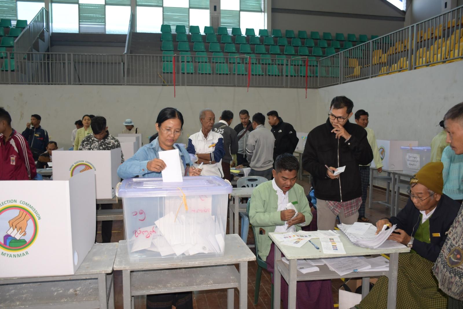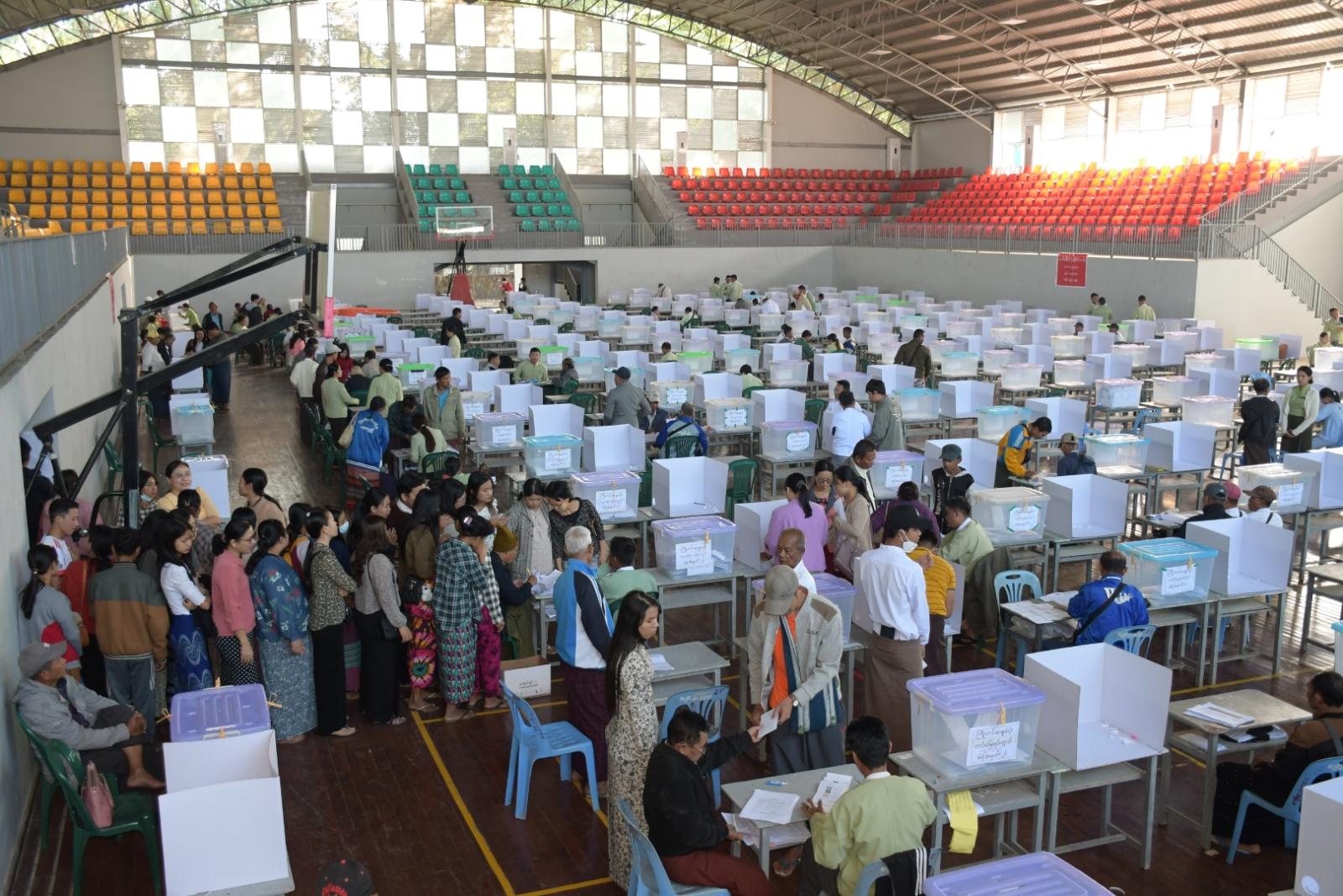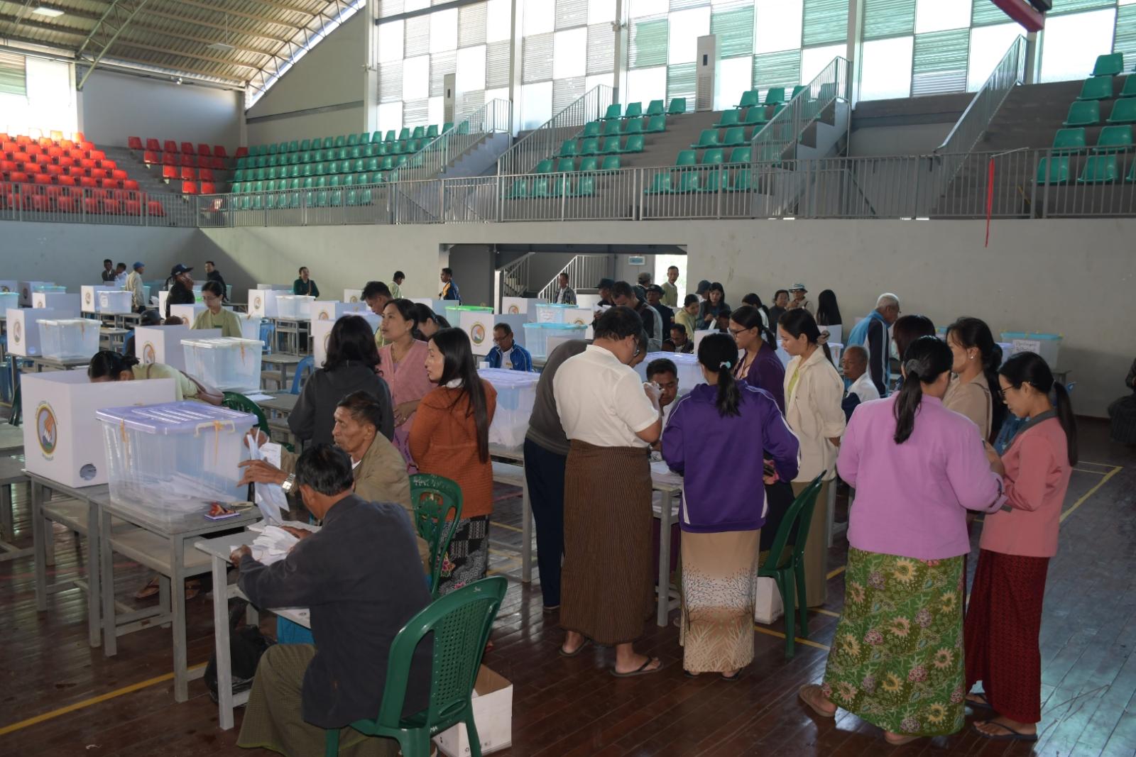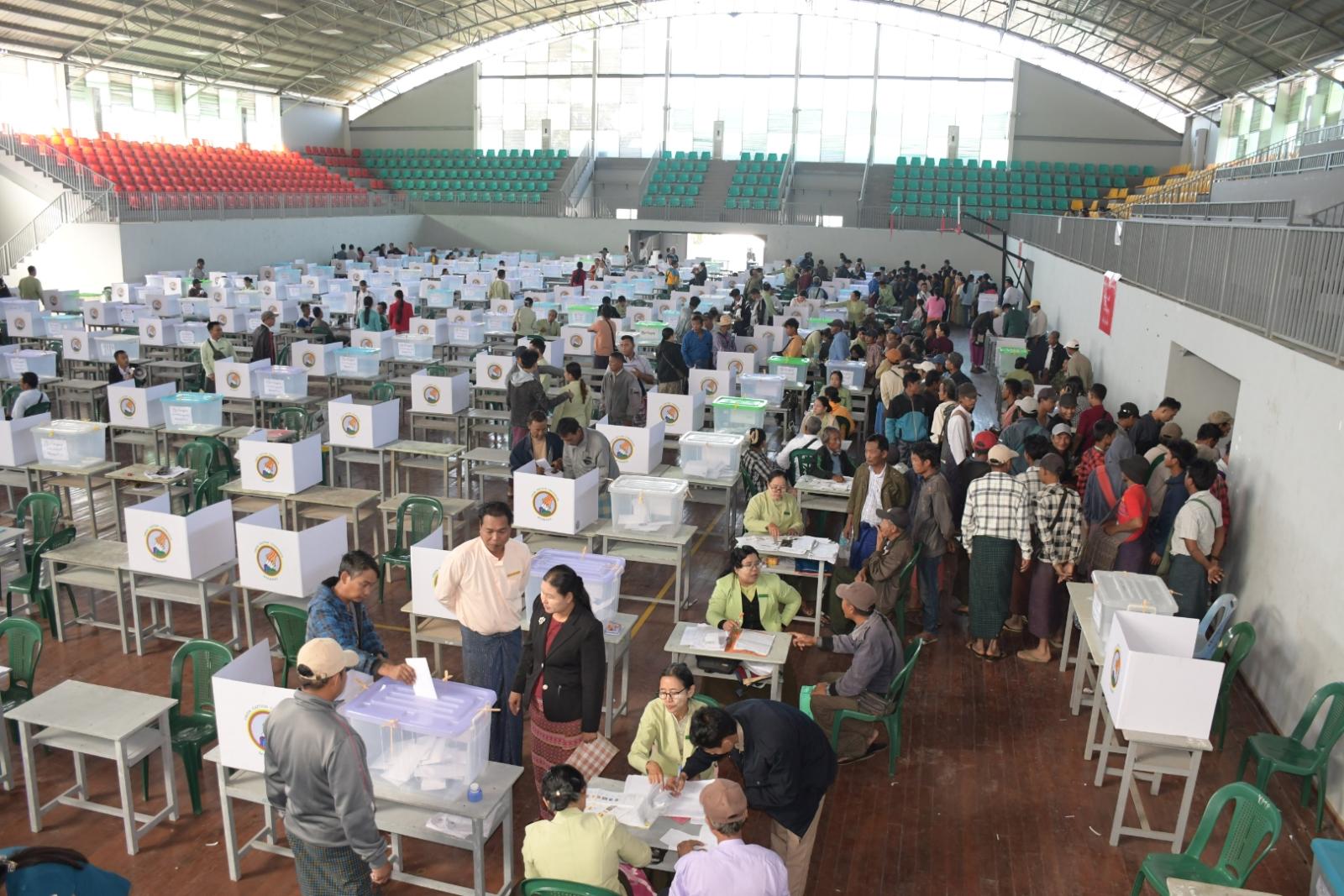 ပဲခူးတိုင်းဒေသကြီး၊ တောင်ငူခရိုင်အားကစားကွင်း၊ မိုးလုံလေလုံအားကစားခန်းမ၌ ယနေ့နံနက် (၈)နာရီအချိန်ခန့်က တောင်ငူမြို့နယ်အတွင်း ရွေးကောက်ပွဲတွင် တာဝန်ထမ်းဆောင်ရမည့် ခရိုင်နှင့်မြို့နယ်အဆင့် ဌာနဆိုင်ရာဝန်ထမ်းများ၊ ခရိုင်၊ မြို့နယ်၊ ရပ်ကွက်၊ ကျေးရွာ ကော်မရှင်အဖွဲ့ဥက္ကဋ္ဌနှင့် အဖွဲ့ဝင်များ ကြိုတင်ဆန္ဒမဲပေးကြသည်။
