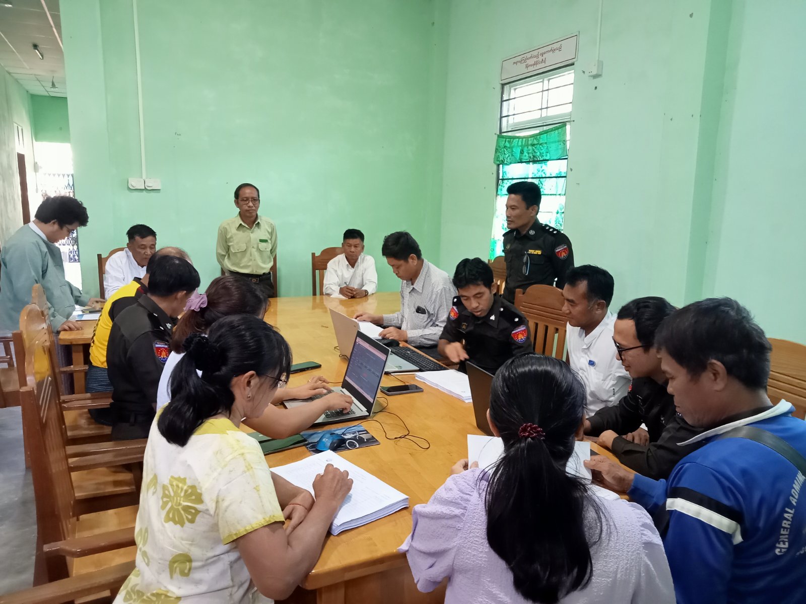 ထိုသို့ တိုက်ဆိုင်စစ်ဆေးရာတွင် ဒုတိယအကြိမ် မဲဆန္ဒရှင်စာရင်းများ ကြေညာပြီးနောက် မဲစာရင်းများ ပြည့်စုံမှန်ကန်စေရေးအတွက် မဲဆန္ဒရှင်များ၏ တောင်းဆိုမှု၊ ပြင်ဆင်မှုနှင့် ကန့်ကွက်မှုများအား စိစစ်ပြင်ဆင်ပြီး မဲစာရင်း(တတိယ)အကြိမ်ကို သက်ဆိုင်ရာ ရပ်ကွက်/ကျေးရွာအုပ်စု ကော်မရှင်အဖွဲ့ခွဲများနှင့် ကျေးရွာအုပ်စုအတွင်းရှိ ကျေးရွာများတွင် နောက်ဆုံးအကြိမ် ကပ်ထားကြေညာမည်ဖြစ်ရာ လူဝင်မှုကြီးကြပ်ရေးနှင့် ပြည်သူ့အင်အားဝန်ကြီးဌာန မြို့နယ်ဦးစီးမှူးရုံး၊ မြို့နယ်အထွေထွေအုပ်ချုပ်ရေးဦးစီးဌာန၊ မြို့နယ်ကော်မရှင်အဖွဲ့ခွဲရုံး ဝန်ထမ်းများ၊ ရပ်/ကျေးကော်မရှင်အဖွဲ့ဝင်များ၊ နိုင်ငံရေးပါတီများမှ ကိုယ်စားလှယ်အဖွဲ့များက ပူးပေါင်း၍ လူဝင်မှုကြီးကြပ်ရေးနှင့်ပြည်သူ့အင်အားဝန်ကြီးဌာန မြို့နယ်ဦးစီးမှူးရုံးမှ e-ID Sever ဖြင့် တိုက်ဆိုင်စစ်ဆေးဆောင်ရွက်နေမှုကို မြို့နယ် စီမံခန့်ခွဲရေးနှင့်အုပ်ချုပ်ရေးကော်မတီဥက္ကဋ္ဌ ဦးအောင်မြင့်သိန်း၊ မြို့နယ် လူဝင်မှုကြီးကြပ်ရေးနှင့်ပြည်သူ့အင်အားဝန်ကြီးဌာန မြို့နယ်ဦးစီးဌာနမှူး ဦးတင်အေး၊ မြို့နယ်ရွေးကောက်ပွဲ ကော်မရှင်အရာရှိ ဦးစိုးကိုကိုလွင်တို့က ကြည့်ရှုစစ်ဆေး၍ လိုအပ်သည်များ ပေါင်းစပ်ညှိနှိုင်း ဆောင်ရွက်ပေးခဲ့ကြောင်း သိရသည်။