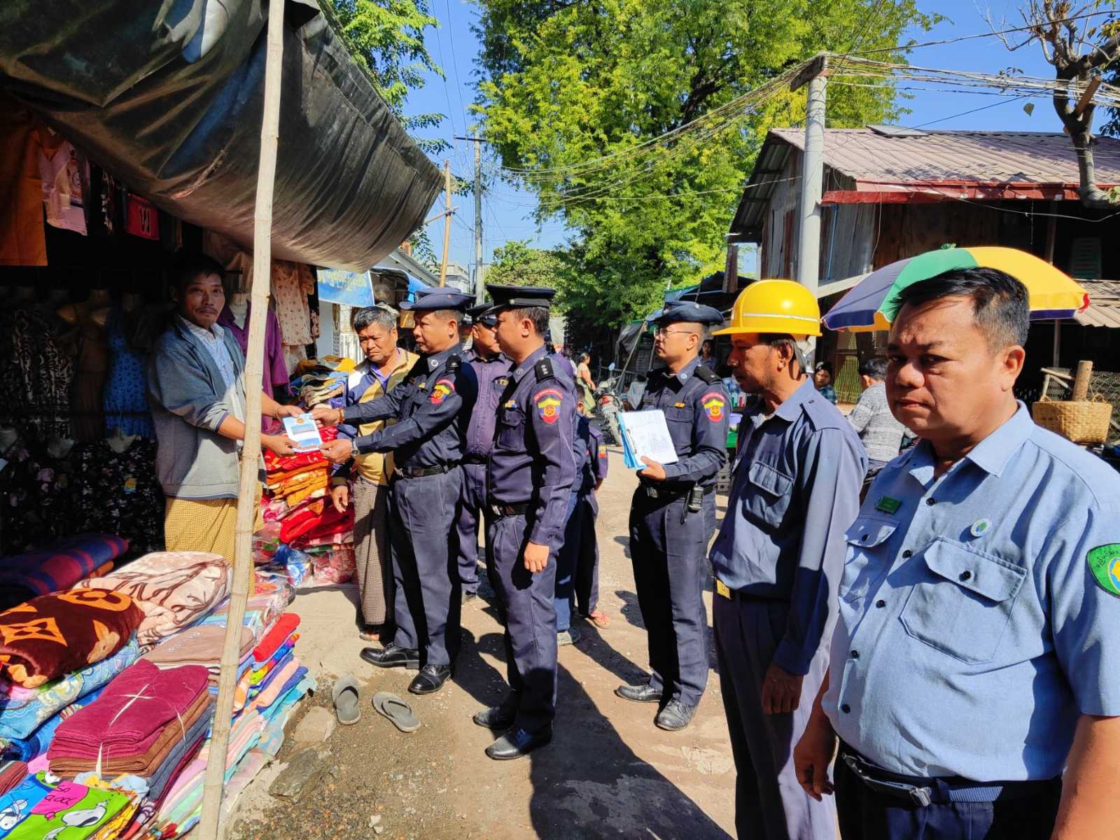 အဆိုပါဈေးအတွင်း ဈေးသူ/သားများအား မီးဘေးလုံခြုံရေး အသိပညာပေးဟောပြောခြင်း၊ လက်တွေ့မီးငြှိမ်းသတ်ခြင်း၊ လက်ကမ်းစာစောင်များဖြန့်ဝေခြင်း၊ မီးသတ်ယာဉ်များ၊ စေတနာမွန် လူမှုရေးအသင်းမှ ရေသယ်ယာဉ်များဖြင့် သဏ္ဍာန်တူ ဇာတ်တိုက်လေ့ကျင့် ဆောင်ရွက်ခဲ့ရာ ခရိုင်မီးသတ်ဦးစီးမှူး လက်ထောက်ညွှန်ကြားရေးမှူး ဦးမင်းမင်းစိုးမှ လိုက်လံကြည့်ရှု စစ်ဆေးခဲ့ပြီး၊ လိုအပ်သည်များ မှာကြားခဲ့ကြောင်း သိရှိရသည်။