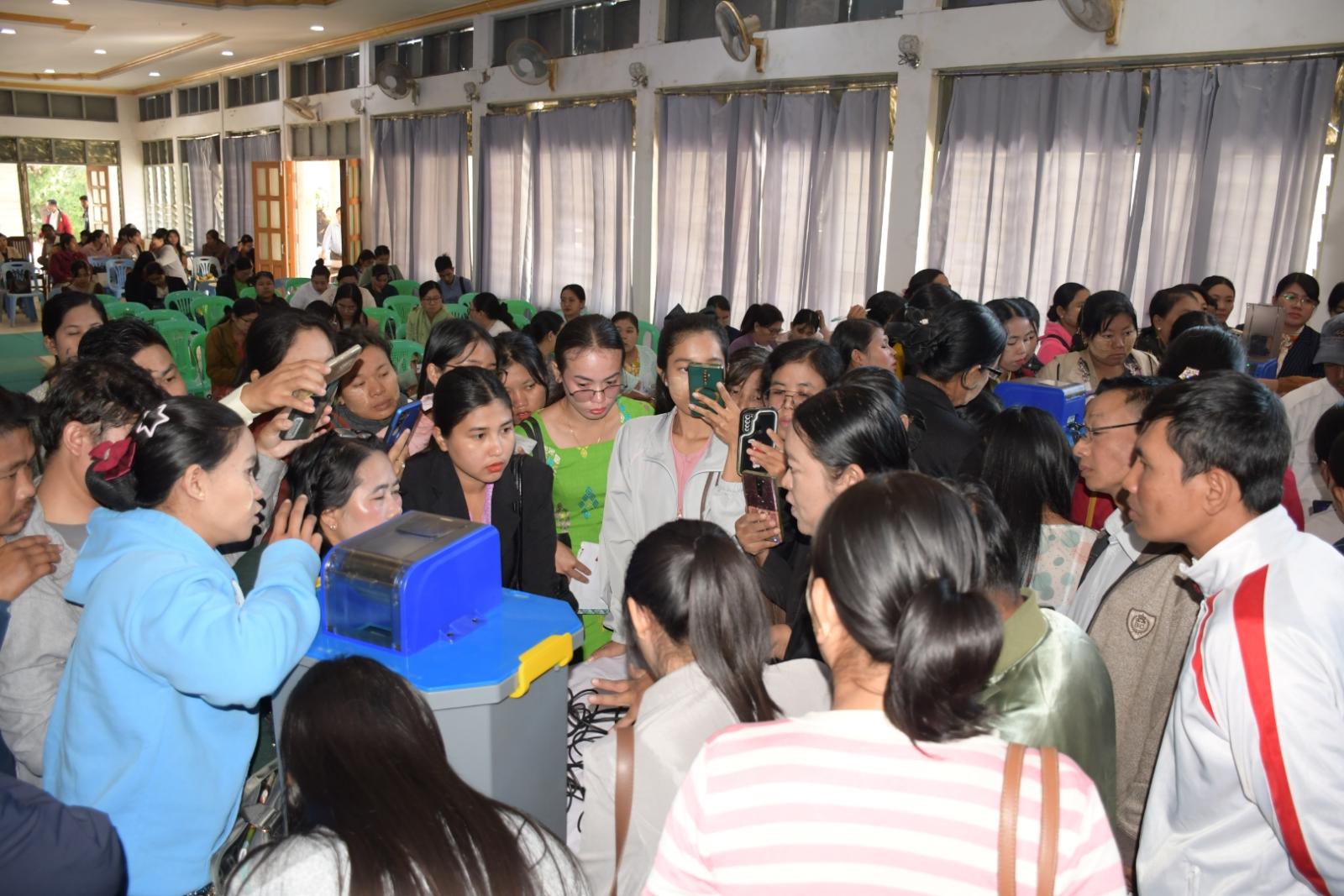 ပဲခူးတိုင်းဒေသကြီး၊ တောင်ငူခရိုင်၊ တောင်ငူမြို့နယ်၌ ၂၀၂၅ ခုနှစ် ပါတီစုံအထွေထွေရွေးကောက်ပွဲ အပိုင်း (၁) အောင်မြင်စွာကျင်းပနိုင်ရေးအတွက် တောင်ငူခရိုင် စီမံခန့်ခွဲရေးနှင့်အုပ်ချုပ်ရေးကော်မတီအဖွဲ့မှ ကြီးကြပ်၍ မဲပေးစက်၊ စက်ကိုင်များအား မွမ်းမံသင်တန်းကို ယနေ့နံနက် (၉) နာရီအချိန်က ကေတုရတနာခန်းမနှင့် အ.ထ.က (၄) ကျောင်းတို့၌ မွမ်းမံသင်တန်းဖွင့်လှစ်သည်။