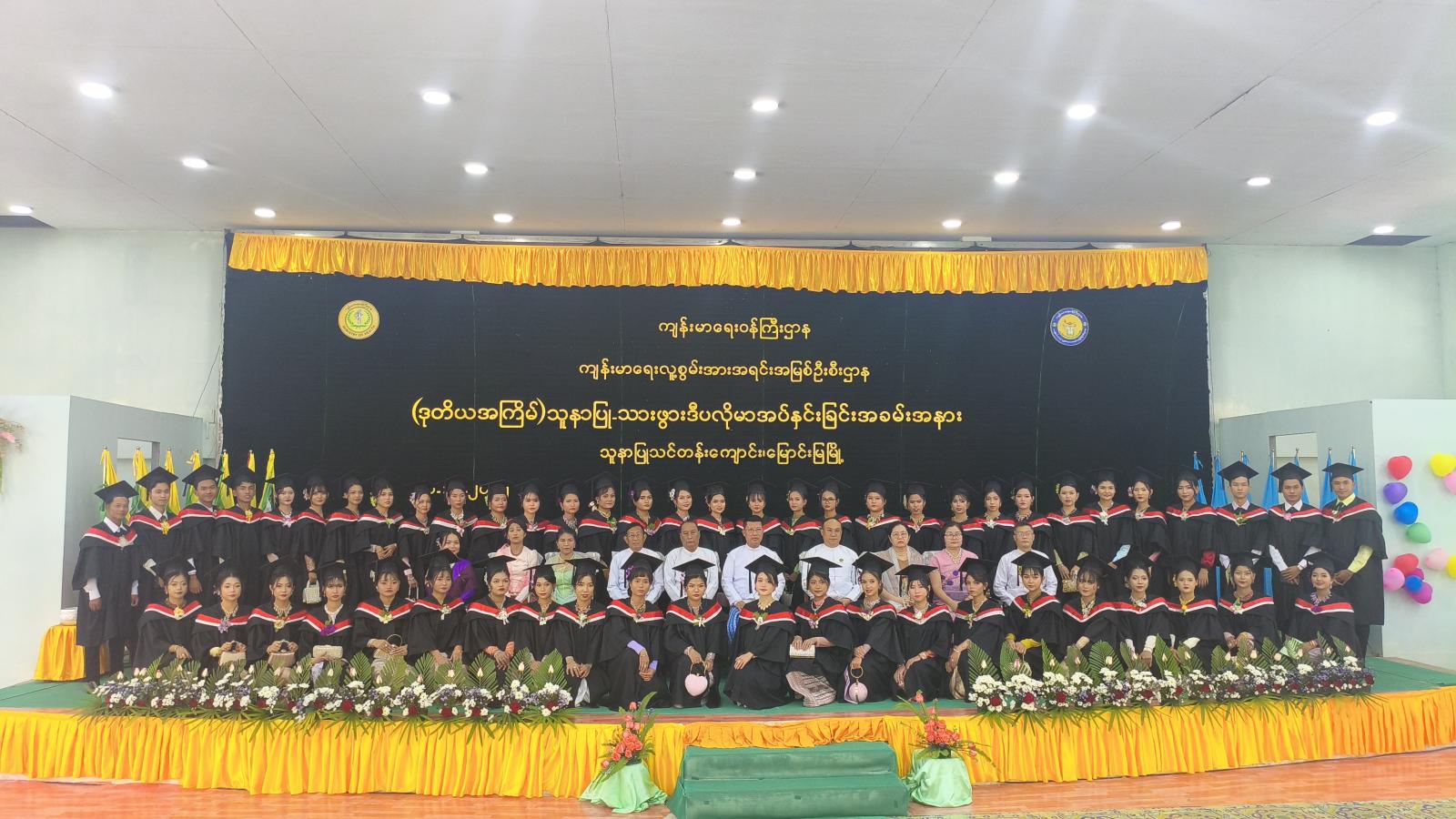 ဆက်လက်၍ ဒုတိယပိုင်းအခမ်းအနားအစီအစဉ်တွင် သူနာပြုသင်တန်းကျောင်းမှ ကျောင်းအုပ်ဆရာမကြီး နော်ကပေါ်ရှီးက အမှာစကားပြောကြားခဲ့ပြီး သူနာပြုသစ္စာအဓိဋ္ဌာန်အား တိုင်ကြားပေးခဲ့ရာ သင်တန်းသား၊ သင်တန်းသူများက လိုက်ပါရွတ်ဆိုခဲ့သည်။ ထို့နောက် လုပ်ငန်းခွင်ဝင်မည့် သင်တန်းသား၊ သင်တန်းသူများအား သူနာပြု-သားဖွား ဒီပလိုမာများ အပ်နှင်းခဲ့ကြောင်း သိရသည်။