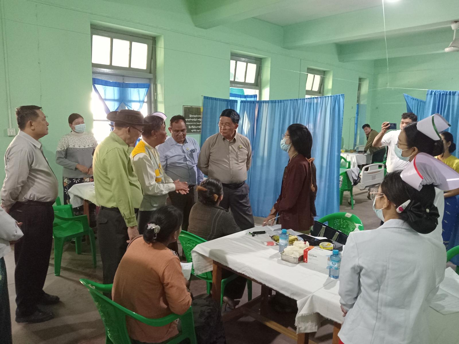 ဆက်လက်၍ ရေနံချောင်းမြို့နယ် ပြည်သူ့ဆေးရုံးကြီးတွင် မကွေးတိုင်းဒေသကြီး သင်ကြားရေးဆေးရုံကြီးမှ အထူးကုဆရာဝန်ကြီးများအဖွဲ့က ရပ်ကွက်/ကျေးရွာအုပ်စုများမှ လူနာများအား အခမဲ့ကျန်းမာရေးစစ်ဆေးကုသပေးနေမှုများကို တိုင်းဒေသကြီးဝန်ကြီးချုပ်နှင့်အဖွဲ့က ကြည့်ရှုအားပေးပြီး တိုင်းဒေသကြီးအစိုးရအဖွဲ့မှ လှူဒါန်းသည့် မင်းဘူးနှင့်ရေသန့်ဘူးများကို ဝန်ကြီးချုပ်နှင့်တာဝန်ရှိသူများက လူနာများအား တစ်ဦးချင်းလှူဒါန်းပေးအပ်ခဲ့ကြောင်း သိရသည်။