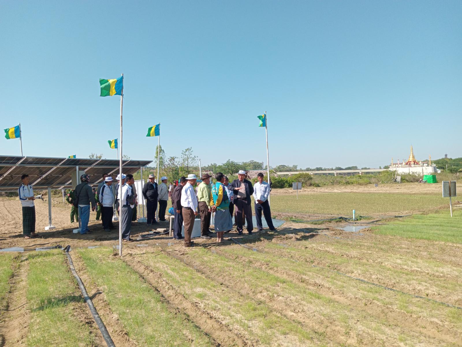 ရှေးဦးစွာ တိုင်းဒေသကြီးဝန်ကြီးချုပ်နှင့်အဖွဲ့သည် ရေနံချောင်းမြို့နယ် သုံးဆယ့်ခြောက် ကျေးရွာအုပ်စု ကွင်းအမှတ်(၃၂/ခ/၁) သုံးဆယ့်ခြောက်တောင်အနောက်ကွင်းတွင် ဆိုလာရေတင်စနစ်ဖြင့် စက်မှုလယ်ယာဦးစီးဌာနက ယာမြေမှ လယ်မြေအဖြစ်ပြောင်းလဲပြီး စပါးစိုက်ပျိုးနိုင်ရေးဆောင်ရွက်လျက်ရှိသည့် ဧရိယာဧက(၁၀၂.၇၀)ဧကနှင့် တစ်ဆက်တစ်စပ်တည်းတိုးချဲ့စိုက်ပျိုးနိုင်မည့် ဧရိယာ(၆၂.၆၅)ဧကမြေနေရာအား ကြည့်ရှုစစ်ဆေးသည်။ ထို့နောက် ရှင်းလင်းဆောင်တွင် ယာမြေမှလယ်မြေအဖြစ် ပြောင်းလဲစိုက်ပျိုးမည့် တောင်သူများနှင့်တွေ့ဆုံကာ လယ်မြေအဖြစ်ပြောင်းလဲစိုက်ပျိုးရာတွင် သီးနှံများအထွက်နှုန်းကောင်းမွန်ရေးနှင့် သီးနှံဝင်ငွေတိုးပွားရေးအတွက် စိုက်ပျိုးရေးနည်းလမ်းကောင်းများကိုလည်း သက်ဆိုင်ရာဌာနများနှင့် ချိတ်ဆက်ဆောင်ရွက်ကြဖို့လိုကြောင်း မှာကြားသည်။