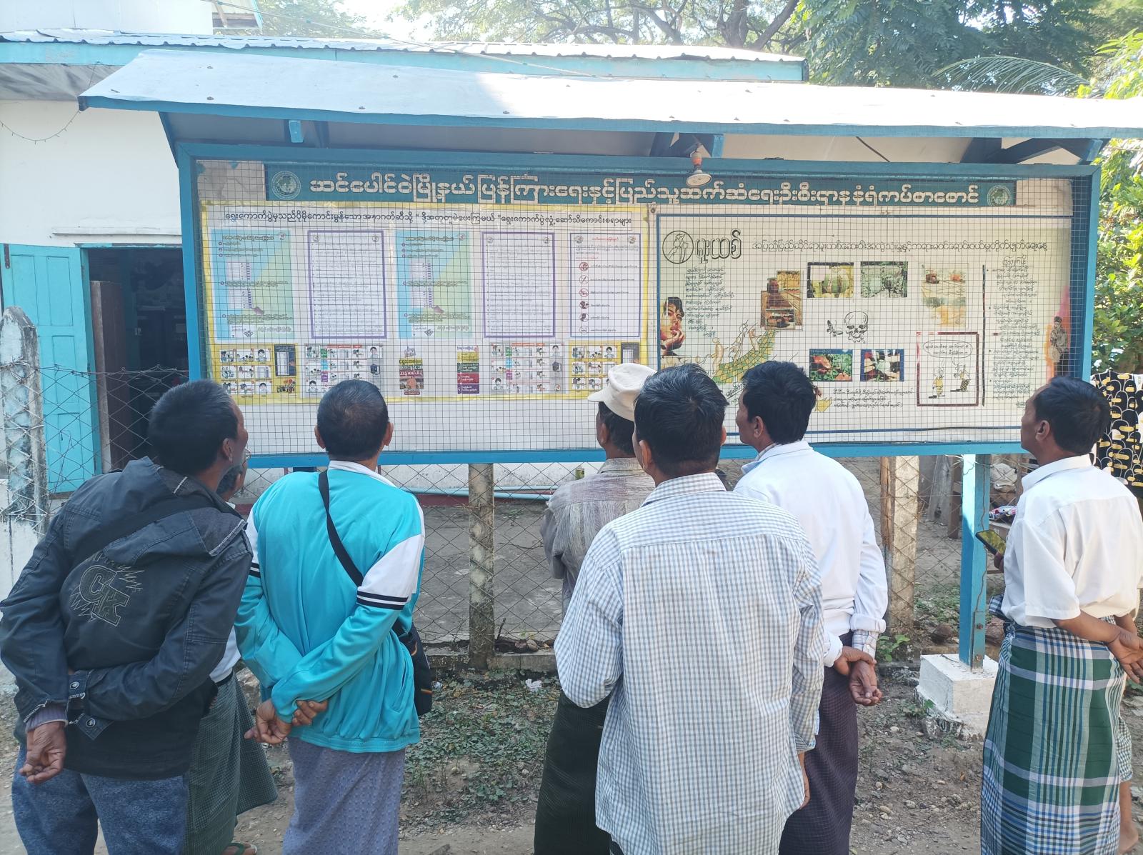 အဆိုပါ မြေစိုက်နံရံကပ်ဘုတ်၌ ၂၀၂၅ ခုနှစ်၊ ပါတီစုံဒီမိုကရေစီအထွေထွေရွေးကောက်ပွဲကြီးတွင် မဲဆန္ဒရှင်ပြည်သူများအနေဖြင့် ဆန္ဒမဲပေးရာ၌ မြန်မာအီလက်ထရောနစ်မဲပေးစက်ဖြင့် မဲပေးခြင်းဆိုင်ရာများ၊ ဆန္ဒမဲပေးရာ၌ ဆောင်ရွက်ရမည့် ဆောင်ရန်/ရှောင်ရန် အသိပညာပေးနံရံကပ်ပိုစတာများနှင့် “ဒို့အတူမဲပေးကြမယ်” အသိပညာပေးလက်ကမ်းစာစောင်များ ပြသပေးထားကြောင်း သိရသည်။