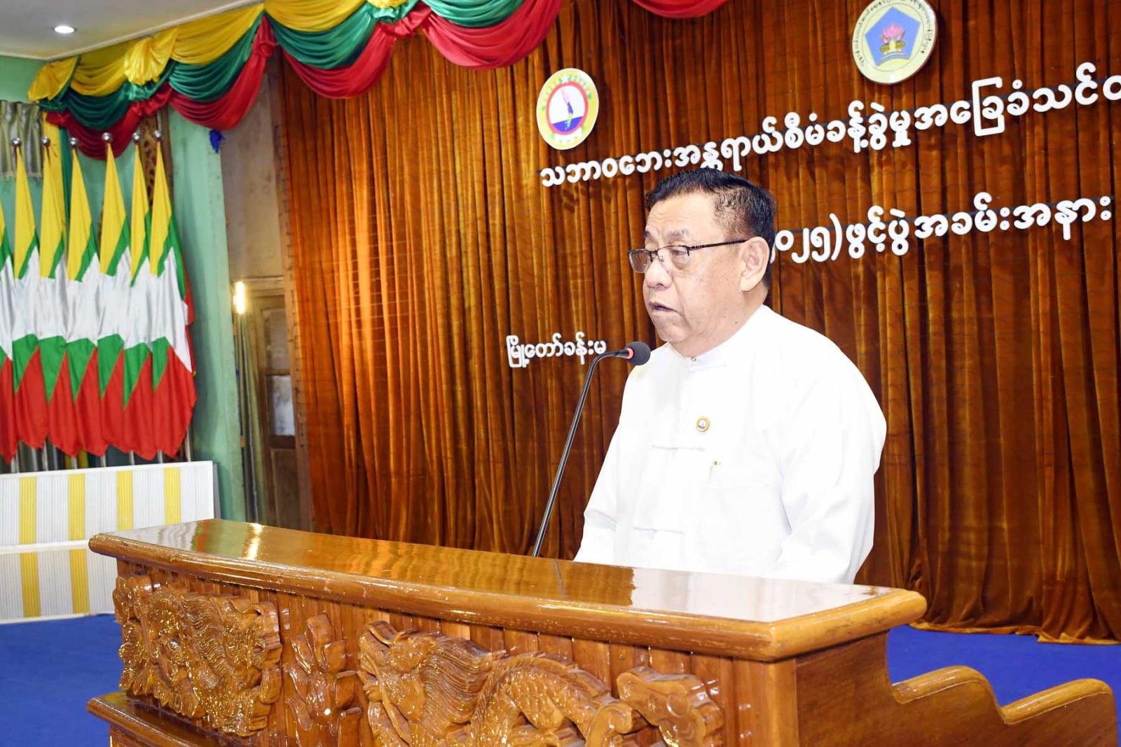 အခမ်းအနားတွင် တိုင်းဒေသကြီးဝန်ကြီးချုပ် ဦးမြတ်ကိုက တိုင်းဒေသကြီးအတွင်း သဘာဝဘေးအန္တရာယ်စီမံခန့်ခွဲမှုအဖွဲ့၏လုပ်ငန်းကော်မတီများသာမက တိုင်းဒေသကြီးအတွင်းဌာနဆိုင်ရာများအနေဖြင့် သဘာဝဘေးအန္တရာယ်နှင့်စပ်လျဉ်းသည့် အသိပညာများတိုးပွားကာ ဘေးအန္တရာယ်စီမံခန့်ခွဲမှုလုပ်ငန်းများ ဆောင်ရွက်ရာတွင် အချင်းချင်းပူးပေါင်းဆောင်ရွက်မှု ပိုမိုအားကောင်းလာမှာဖြစ်ကြောင်း၊ ထို့အပြင် အချင်းချင်းချိတ်ဆက်မှုအား ကောင်းစွာဖြင့် ဘေးဒဏ်ကြံ့ကြံ့ခံ ရင်ဆိုင်နိုင်စွမ်းရှိသည့် လူ့အသိုက်အဝန်းတစ်ခု ပေါ်ထွန်းလာစေရန်ရည်ရွယ်၍ ဖွင့်လှစ်ခြင်းဖြစ်ကြောင်း၊ သဘာဝကနေဖြစ်ပွားလာသည့်ဘေးအန္တရာယ်များကို တားဆီးလို့မရသောကြောင့် ထိခိုက်ပျက်စီး ဆုံးရှုံးမှုများကို လျော့နည်းသက်သာစေရန်အတွက် နိုင်ငံတော်အနေဖြင့် အမျိုးသားသဘာဝဘေးအန္တရာယ်ဆိုင်ရာ စီမံခန့်ခွဲမှု ကော်မတီက ဦးဆောင်ပြီးကြိုတင်ပြင်ဆင်ခြင်း၊ အရေးပေါ်တုံ့ပြန်ခြင်း၊ ပြန်လည်ထူထောင်ခြင်းစသည့် အဆင့်အလိုက် ကြီးကြပ်လမ်းညွှန် ဆောင်ရွက်လျက်ရှိသလို မိမိတို့တိုင်းဒေသကြီးအတွင်းမှာလည်း တိုင်းဒေသကြီးသဘာဝဘေးစီမံခန့်ခွဲမှုအဖွဲ့ကို လုပ်ငန်းကော်မတီ(၁၂)ခုနှင့် ဖွဲ့စည်းပြီးသဘာဝဘေး စီမံခန့်ခွဲမှုလုပ်ငန်းများကို ချိတ်ဆက်ပူးပေါင်းဆောင်ရွက်လျက်ရှိကြောင်း၊ သင်တန်းသား၊ သင်တန်းသူများအနေဖြင့် မိမိတို့၏ဌာနများတွင် လက်တွေ့လုပ်ဆောင်နေရသည့်လုပ်ငန်းအတွေ့အကြုံများဖြင့် သင်တန်းကရရှိလာမည့် အသိပညာဗဟုသုတများကိုပေါင်းစပ်ပြီး မိမိပတ်ဝန်းကျင်နှင့် လုပ်ငန်းနယ်ပယ် အသီးသီးတွင်ပြန်လည် အသုံးချဆောင်ရွက်နိုင်သောအခြေအနေထိရောက်အောင် ကြိုးစားသင်ယူကြစေလိုကြောင်း၊ သဘာဝဘေး အန္တရာယ်စီမံခန့်ခွဲမှုလုပ်ငန်းများကို မိမိတို့၏လုပ်ငန်းနယ်ပယ်နှင့်ပေါင်းစပ်ပြီး ဌာနများအကြားပူးပေါင်း ဆောင်ရွက်မှုမြှင့်တင်နိုင်စေရန်၊ ဘေးအန္တရာယ်များရင်ဆိုင်ကြုံတွေ့လာရပါက လည်း ထိရောက်လျင်မြန်စွာ ကိုင်တွယ်ဖြေရှင်းနိုင်ရေးနှင့် အရည်အသွေးပြည့်ဝသောသင်တန်းသား၊ သင်တန်းသူများဖြစ်စေရန်အတွက် သင်ခန်းစာများကိုစိတ်ပါဝင်စားစွာဖြင့် သင်ယူလေ့လာကာ ပြည်သူများအကြား သဘာဝဘေးအန္တရာယ်နှင့် ပတ်သက်ပြီးရင်ဆိုင်တွေ့ကြုံနေရသောအခက်အခဲများ ကိုဖြေရှင်းနိုင်ရေးအတွက် တာဝန်သိစိတ်ကိုယ်စီဖြင့် ကျရာကဏ္ဍအလိုက်ပူးပေါင်းပါဝင်ဆောင်ရွက် ပေးကြရန်လိုအပ်ကြောင်းပြောကြားသည်။