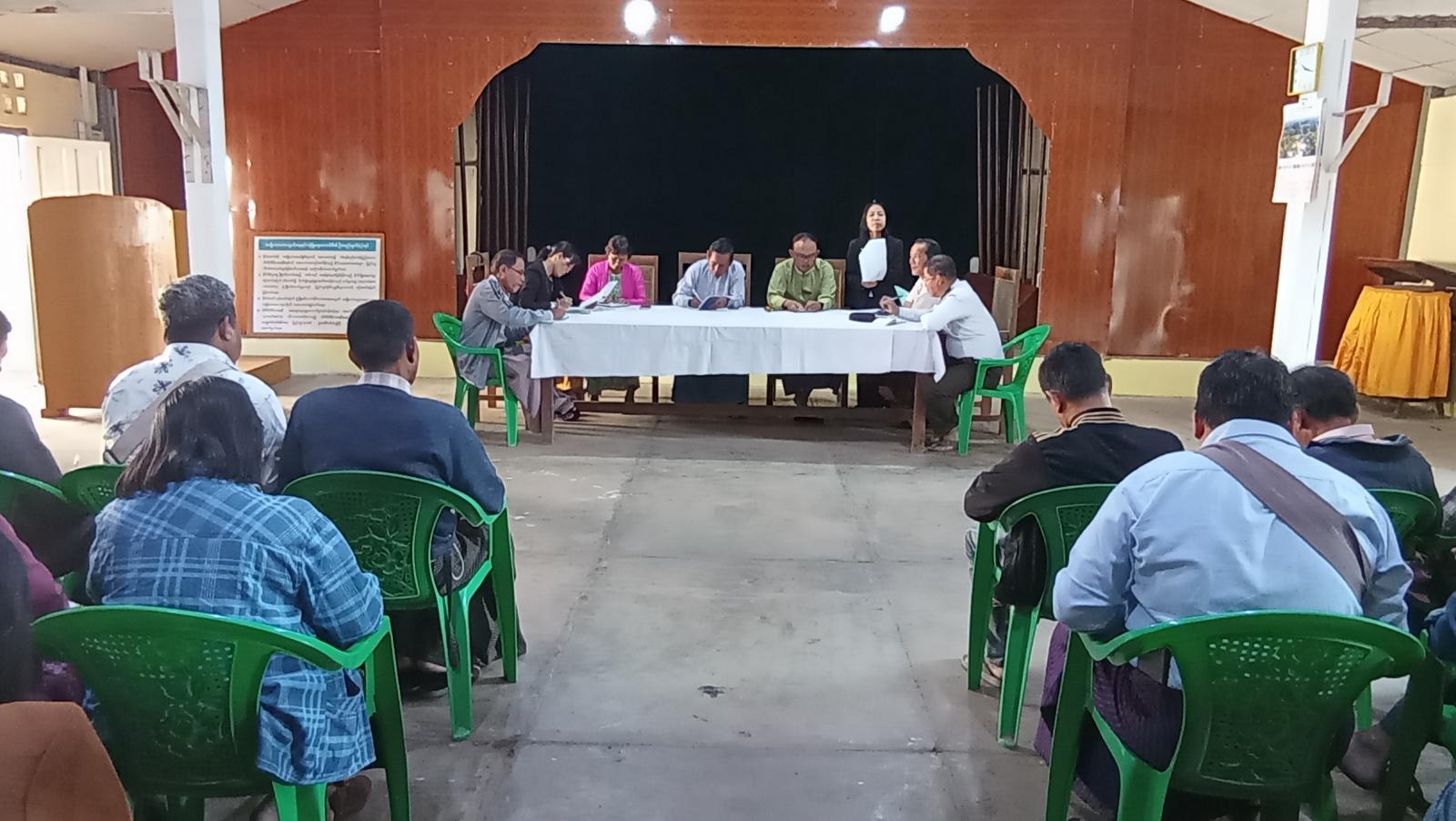 ရှေးဦးစွာ ဒုတိယမြို့နယ်အုပ်ချုပ်ရေးမှူး ဦးစောပြည့်စုံက အဖွင့်အမှာစကားပြောကြားပြီး၊ မြို့နယ်ရွေးကောက်ပွဲကော်မရှင်အဖွဲ့ (ခွဲ) ရုံးမှ ဦးစီးအရာရှိ ဒေါ်သူဇာခင်နှင့် မြို့နယ်ရွေးကောက်ပွဲကော်မရှင်အဖွဲ့ (ခွဲ) ဥက္ကဋ္ဌ ဦးအေးသိုက်တို့က တတိယအကြိမ် ထုတ်ပြန်ကြေညာမည့် မဲဆန္ဒရှင်စာရင်းတိကျမှန်ကန်စေရန်၊ မဲပေးပိုင်ခွင့်ရှိသူများအနေဖြင့် မဲပေးခွင့်မဆုံးရှုံးစေရေး၊ မဲဆန္ဒရှင်စာရင်းများ ပြည့်စုံမှန်ကန်မှုရှိစေရေးအတွက် သက်ဆိုင်ရာဌာနများမှ တာဝန်ရှိသူများအနေဖြင့် ကဏ္ဍအလိုက် တင်ပြကြရန်၊ ရွေးကောက်ပွဲအောင်မြင်စွာ ကျင်းပနိုင်ရေးသက်ဆိုင်ရာဌာနများအနေဖြင့် ပူးပေါင်းဆောင်ရွက်ကြရန်၊ ရွေးကောက်ပွဲကျင်းပနိုင်မည့် ရပ်ကွက်/ ကျေးရွာ အုပ်စုများအနေဖြင့် လက်ရှိဆောင်ရွက်နေမှုအခြေအနေများနှင့် အခြားလိုအပ်သည့် လုပ်ငန်းကိစ္စရပ်များအား ရှင်းလင်းဆွေးနွေးပြောကြားခဲ့သည်။ ဆက်လက်၍ တက်ရောက်လာသူများမှ မဲစာရင်းများ မှန်ကန်မှုရှိစေရန်အတွက် ဆောင်ရွက်မှုလုပ်ငန်းများနှင့် မဲစာရင်းပြုစုထားရှိမှုအခြေအနေအား ရှင်းလင်းတင်ပြခဲ့သည်။