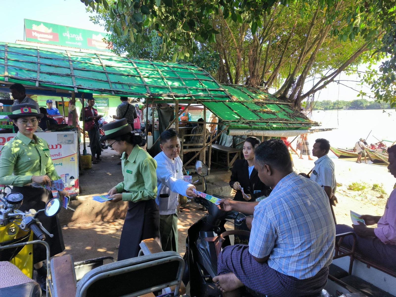 ထိုသို့ ဆောင်ရွက်ရာတွင် ကျောက်တန်းမြို့နယ် အထွေထွေအုပ်ချုပ်ရေးဦးစီးဌာနဝန်ထမ်းများ၊ ပြန်ကြားရေးနှင့်ပြည်သူ့ဆက်ဆံရေးဦးစီးဌာန ဝန်ထမ်းများ၊ စည်ပင်သာယာရေးဝန်ထမ်းများ၊ မြို့နယ်ကြက်ခြေနီသူနာပြု တပ်ဖွဲ့ဝင်များ ပါဝင်သည့် ဌာနဆိုင်ရာပူးပေါင်းအဖွဲ့မှ မြို့နယ်အတွင်း လူစည်ကားရာနေရာဖြစ်သည့် လှေဆိပ်တွင် စျေးရောင်းစျေးဝယ်လာကြသည့် ပြည်သူများအား “ဒို့အတူတူမဲပေးကြမယ်” လက်ကမ်းစာစောင်များ လက်ဝယ်အရောက် ဖြန့်ဝေပေးခဲ့ကြသည်။