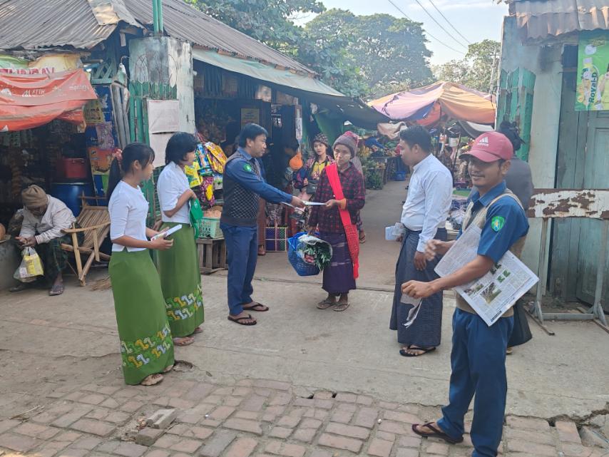 ထို့သို့ ဆောင်ရွက်ရာတွင် ကျောက်ဆည်ခရိုင်၊ ပတ်ဝန်းကျင်ထိန်းသိမ်းရေးဦးစီးဌာနမှ လက်ထောက် ညွှန်ကြားရေးမှူး ဦးမျိုးသီဟနှင့်ဝန်ထမ်းများ၊ စဉ့်ကိုင်မြို့နယ် အထွေထွေအုပ်ချုပ်ရေးဦးစီးဌာနမှ ဝန်ထမ်းများ၊ မြို့နယ်အမျိုးသမီးရေးရာအဖွဲ့ဝင်များ၊ မြို့နယ်မိခင်နှင့်ကလေးစောင့်ရှောက်ရေးအသင်းအဖွဲ့ အဖွဲ့ဝင်များ၊ မြို့နယ်စည်ပင်သာယာရေးအဖွဲ့ဝင်များ ပူးပေါင်း၍ ဈေးရောင်း/ ဈေးဝယ်သူများအား ဈေးရောင်းရာတွင် ပလတ်စတစ်အိတ်များ အသုံးမပြု၍ ဈေးရောင်းဝယ်ခြင်း မပြုလုပ်ကြရန်၊ ပလတ်စတစ်အိတ်များ အသုံးပြုခြင်းအစား အင်ဖက်ရွက်များ အသုံးပြုကြရန် အသိပညာပေးဟောပြောခဲ့ကြပြီး၊ ဈေးဝယ်သူများအား Recycle Bag (၁၅၀)ပေးခြင်းနှင့် ပတ်ဝန်းကျင်သာယာလှပစေဖို့ ပလတ်စတစ်အမှိုက်ကင်းစေရေး ဆောင်ရွက်စို့ ခေါင်းစဉ်ပါ အသိပညာပေး လက်ကမ်းစာစောင်များကို (အခမဲ့) ဖြန့်ဝေပေးခဲ့ကြကြောင်း သိရသည်။