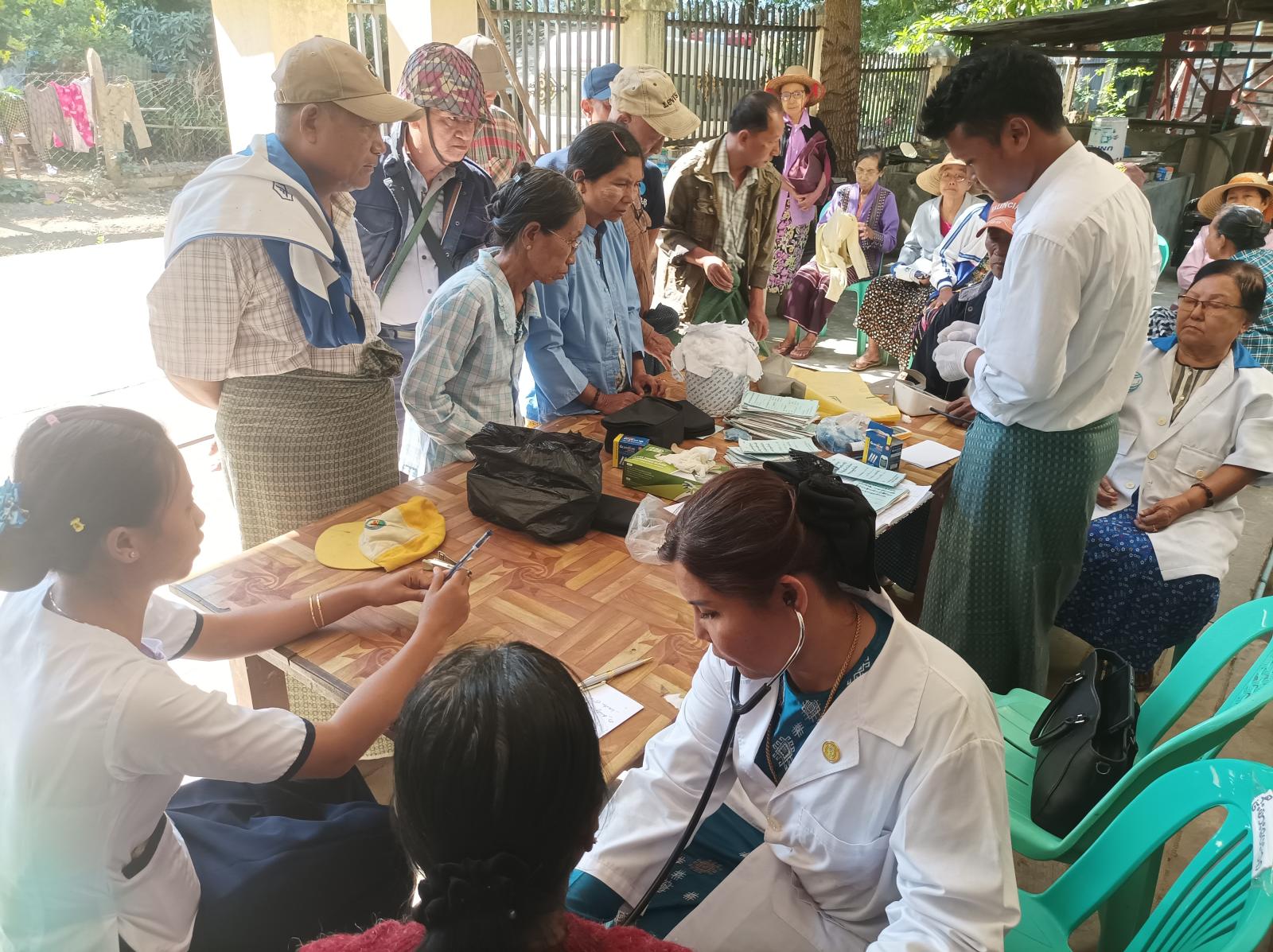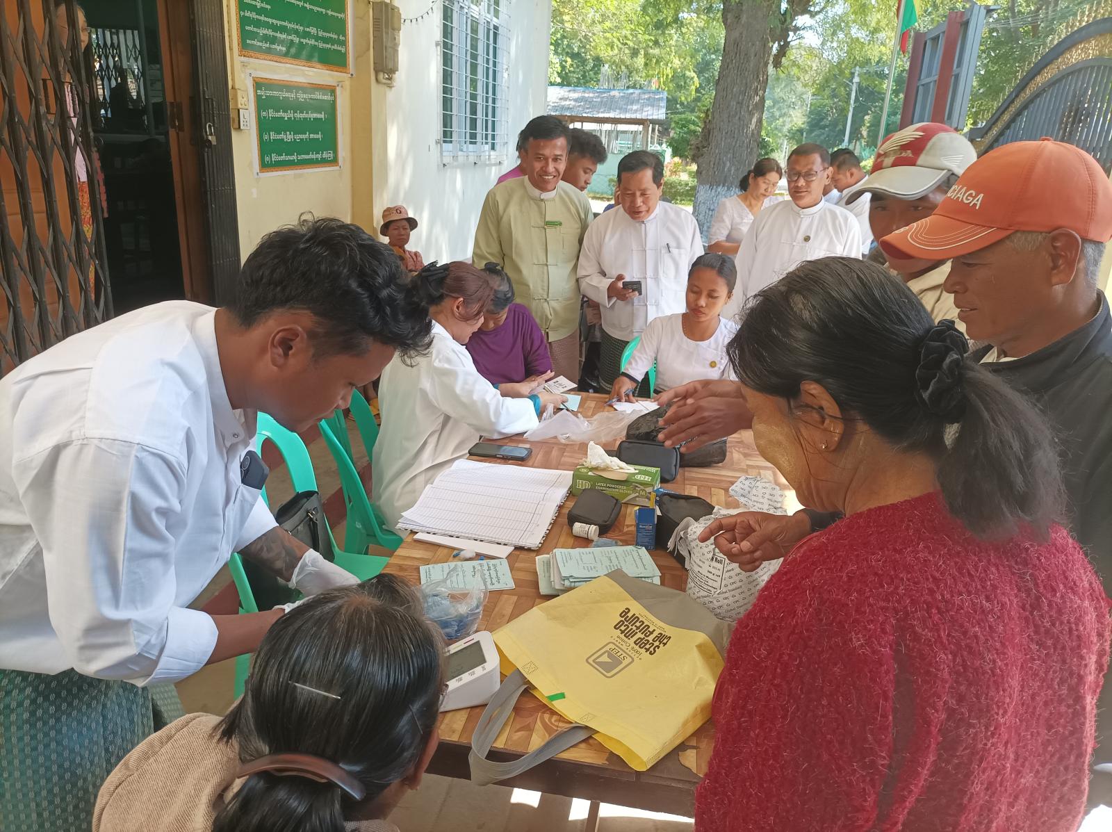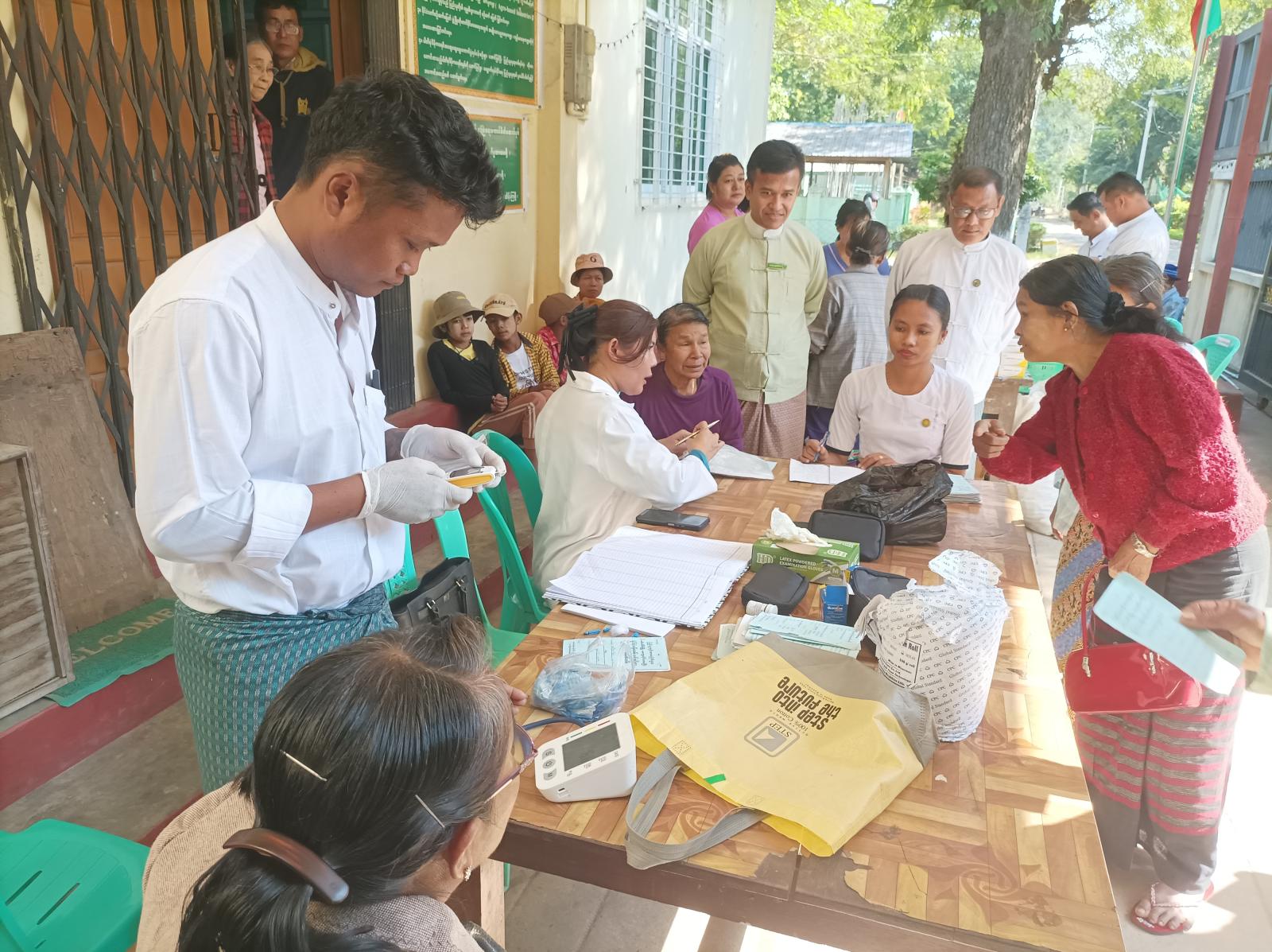ဆက်လက်ပြီး အငြိမ်းစားနိုင်ငံ့ဝန်ထမ်းများအား မြို့နယ်ပြည်သူ့ကျန်းမာရေးနှင့် ကုသရေးဦးစီးဌာနမှူး ဒေါက်တာမွန်စိုးရီ ဦးဆောင်၍ ကျန်းမာရေးဝန်ထမ်းများက သွေးပေါင်ချိန်တိုင်းပေးခြင်း၊ သွေးချို ဆီးချိုရောဂါ စစ်ဆေးကုသပေးခဲ့ပြီး သက်ဆိုင်ရာရောဂါများအလိုက် သောက်ဆေးများကို အခမဲ့ပေးအပ်ခဲ့ကြောင်း သိရသည်။