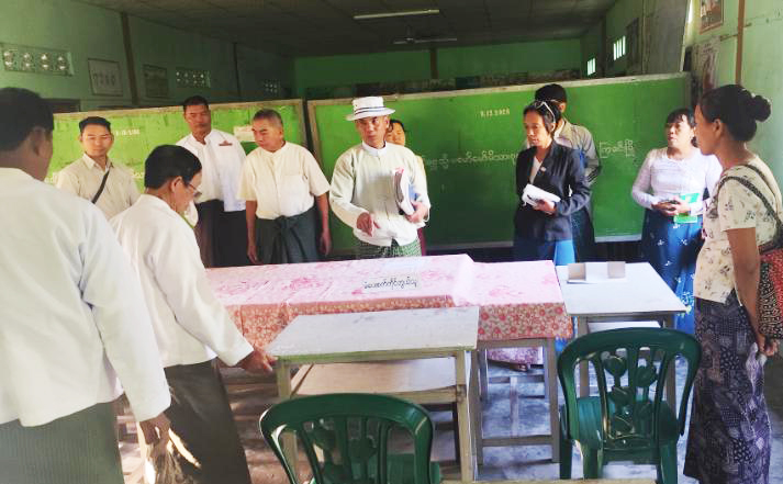 ထို့သို့ ကွင်းဆင်းကြည့်ရှုရာတွင် တိုင်းဒေသကြီးရွေးကောက်ပွဲကော်မရှင်တာဝန်ခံ ဦးသန်းထွန်း၊ မြို့နယ်ရွေးကောက်ပွဲကော်မရှင်ဥက္ကဋ္ဌ လှိုင်ဝင်းနှင့်အဖွဲ့ဝင်များ၊ မြို့ရွေးကောက်ပွဲကော်မရှင်(ခွဲ) အရာရှိ ဒေါ်ဝင်းဝင်းမြင့်၊ မြို့နယ်ရွေးကောက်ပွဲကောက်မရှင်အဖွဲ့ဝင် ဌာနဆိုင်ရာများက ရွှေတောင်စုရပ်ကွက်၊ ရွာသစ်ရပ်ကွက်၊ မြို့မရပ်ကွက်တို့ရှိ မဲရုံများ စနစ်တကျ နေရာချထားမှု ရှိ/မရှိ၊ ဆန္ဒမဲ လာရောက်မဲပေးမည့် ပြည်သူများ အဆင်ပြေစိတ်ချလုံခြုံစွာ မဲပေးနိုင်ရေး၊ အဝင်လမ်း၊ အထွက်လမ်း မြင်သာအောင်ဆောင်ရွက်ထားရှိရေးတို့ကို တိုင်းဒေသကြီးရွေးကောက်ပွဲကော်မရှင်တာဝန်ခံက မဲရုံမှူး၊ ဒုမဲရုံမှူးတို့အား လိုအပ်သည်များကို ပေါင်းစပ်ဆောင်ရွက်သွားကြရန် ညှိနှိုင်းပေးခဲ့ကြကြောင်း သိရသည်။