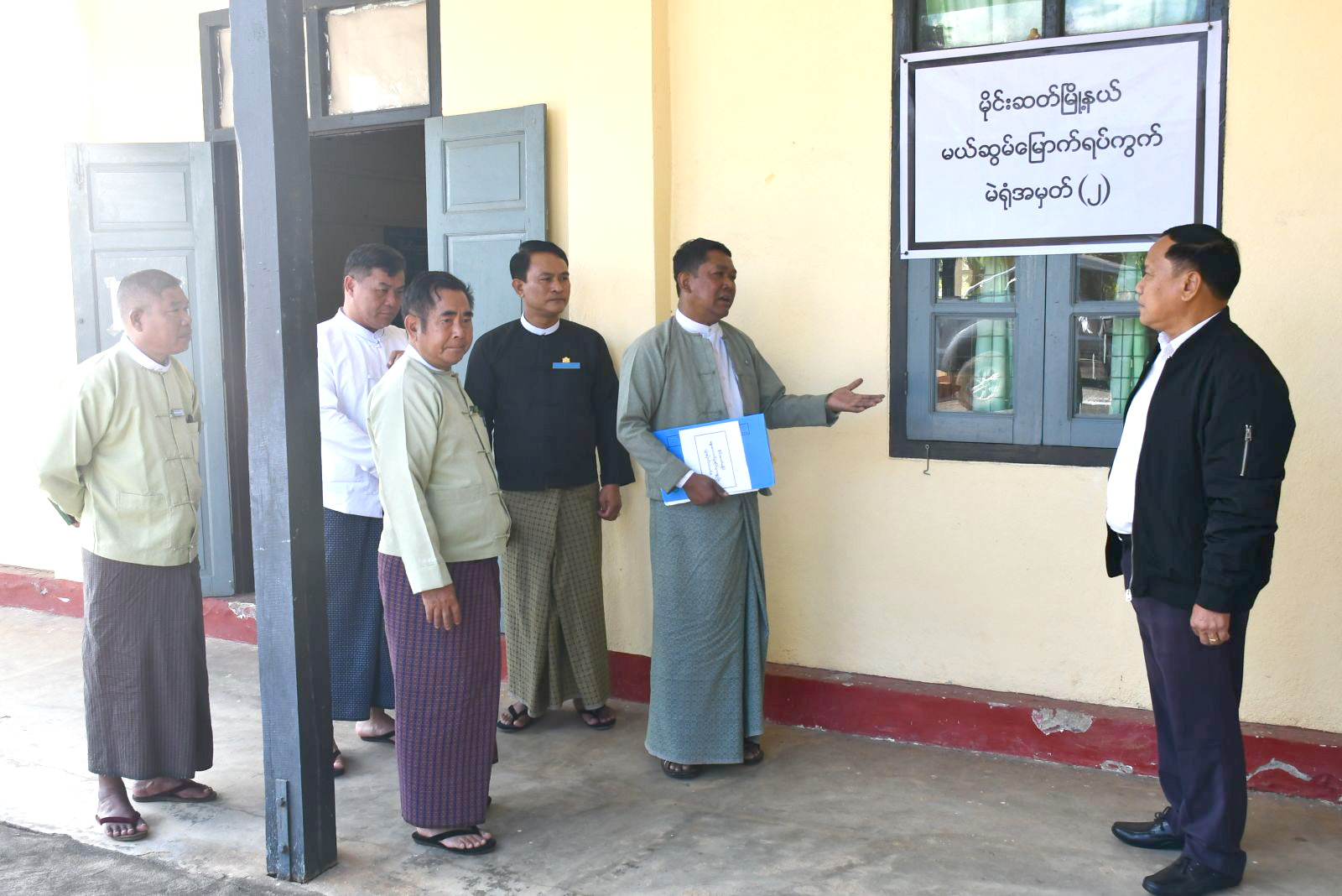 ဆက်လက်၍ မိုင်းဆတ်မြို့နယ်၊ မယ်ဆွမ်မြောက်ရပ်ကွက်၊ မဲရုံအမှတ်(၂)တွင် မဲရုံမှူး၊ ဒုတိယမဲရုံမှူးနှင့် မဲရုံအဖွဲ့ဝင် လုပ်ငန်းလမ်းညွှန်ပါ အီလက်ထရောနစ်မဲပေးစက်အသုံးပြုသည့် မဲရုံအတွက် နေရာချထားမှုပုံစံဖြင့် မဲရုံခင်းကျင်းထားရှိမှုများလိုက်လံကြည့်ရှုစစ်ဆေးပြီး ခရိုင်ရွေးကောက်ပွဲကော်မရှင်အဖွဲ့ခွဲရုံးတွင် ခရိုင်/ မြို့နယ်စီမံခန့်ခွဲရေးနှင့်အုပ်ချုပ်ရေးကော်မတီဥက္ကဋ္ဌများ၊ ခရိုင်/မြို့နယ်ရွေးကောက်ပွဲကော်မရှင်အဖွဲ့ခွဲဥက္ကဋ္ဌနှင့် အဖွဲ့ဝင်များ၊ ခရိုင်/ မြို့နယ်ရွေးကော်ပွဲ ကော်မရှင်အဖွဲ့ခွဲ အရာထမ်း၊ အမှုထမ်းများနှင့်တွေ့ဆုံ၍ ရွေးကောက်ပွဲဆိုင်ရာလုပ်ငန်းစဉ်များ၊ ဆက်လက်ဆောင်ရွက်ရမည့် လုပ်ငန်းများအား အသေးစိတ်လမ်းညွှန်၍ လိုအပ်သည်များ မှာကြားခဲ့ကြောင်း သတင်းရရှိသည်။