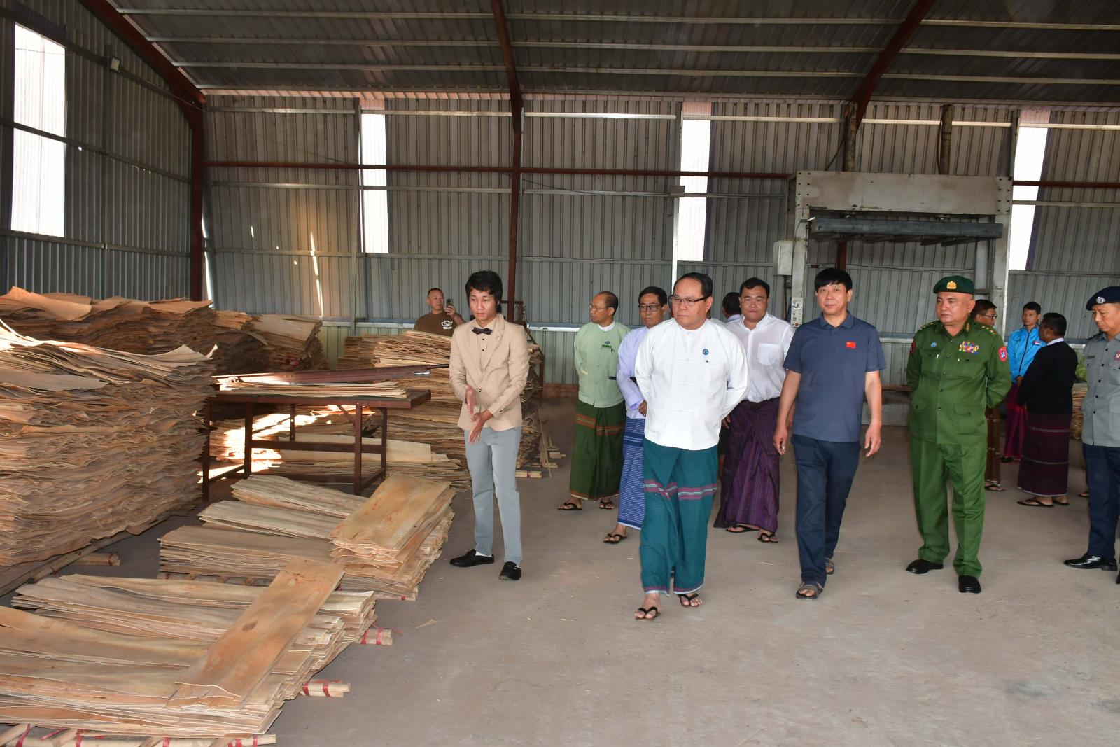 ယင်းနောက် ပြည်နယ်ဝန်ကြီးချုပ်နှင့်တာဝန်ရှိသူများသည် သစ်ပါးလွှာစက်ရုံရှိ အထပ်သားအခွံခွာ အကြမ်းစက်၊ အထပ်သားအချောစက်၊ ဓါးသွေးစက်၊ ဖိသိပ်ထုပ်ပိုးစက်များဖြင့် ရာဘာသစ်ပါးလွှာ ထုတ်လုပ်ပုံအဆင့်ဆင့်နှင့် အရည်အသွေးခွဲခြားပါကင်ထုတ်ပိုးထားရှိမှု၊ စက်ရုံထုတ်ကုန်ပစ္စည်းများကို လှည့်လည်ကြည့်ရှုအားပေးပြီး တာဝန်ရှိသူများအား လိုအပ်သည်များမှာကြားခဲ့သည်။