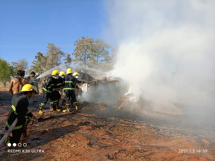 အဆိုပါ ကားမီးလောင်မှုမှာ မြို့သစ်မြို့မှ ကောက်ရိုးဝယ်ယူလာပြီး နတ်မောက်-ရေနံချောင်းကားလမ်းမှ ချောင်းဆုံကျေးရွာသို့ သယ်ဆောင် လာသောကားမှ အိတ်ဇော မီးပွား (Sparks)လွင့်စင်၍ ယာဉ်ပေါ်တွင် တင်ဆောင်လာသော ကောက်ရိုး(နွားစာ) များ အား စတင်ကူးစက် လောင်ကျွမ်းခဲ့ခြင်းဖြစ်ပြီး ယာဉ်မီးလောင်မှုကြောင့် (၁၀)ပေအရှည် ဒိုင်နာကား (အဖြူ) နောက်အကာများ ၊ ရှေ့ခေါင်းခန်း ၊ ကားရှေ့ဘီးများနှင့် ဘတ္ထရီများ မီးလောင်ဆုံးရှုံးခဲ့ပြီး ယာဉ်ပေါ်ပါ ကောက်ရိုးတင်လုပ်သား(၅)ဦး တွင် ပေါက်ပြဲ ၊ ပွန်းပဲ့ ၊ စုတ်ပြဲ ၊ ကျိုးပဲ့ ၊ ပြင်ပဒဏ်ရာ ( မစိုးရိမ်ရ ) များရရှိခဲ့ကြောင်းနှင့် ဒဏ်ရာရလူနာများအား နတ်မောက်မြို့နယ် ပြည်သူ့ ဆေးရုံမှ လူနာတင်ယာဉ်ဖြင့် ပို့ဆောင်ပေးခဲ့ကြောင်း သိရသည်။
