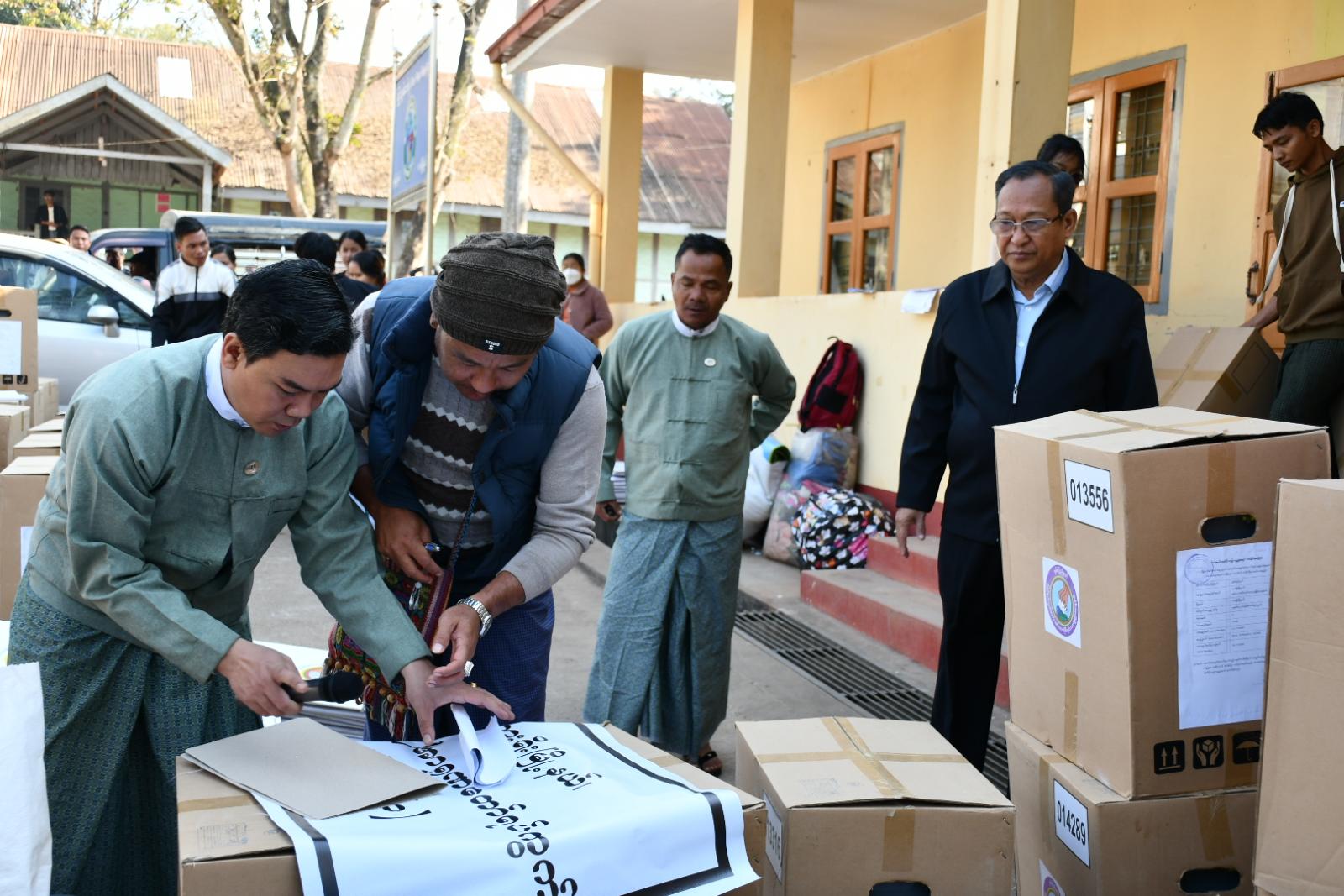 ရှမ်းပြည်နယ်(မြောက်ပိုင်း)၊ လားရှိူးမြို့တွင် ပြည်ထောင်စုရွေးကောက်ပွဲကော်မရှင်အဖွဲ့ဝင် ရှမ်းပြည်နယ်(မြောက်ပိုင်း) တာဝန်ခံဦးမြင့်ဦးနှင့် တာဝန်ရှိသူများသည် ၂၀၂၅ ခုနှစ်၊ ပါတီစုံဒီမိုကရေစီ အထွေထွေရွေးကောက်ပွဲ အောင်မြင်စွာကျင်းပနိုင်ရေးအတွက် ယနေ့နံနက်ပိုင်းတွင် (OSS) ရုံး၌ မဲရုံအလိုက်ဖြန့်ခွဲမည့် မြန်မာအီလက်ထရောနစ် မဲပေးစက်(MEVM)စက်များနှင့် မဲရုံသုံးပစ္စည်းများအား ရပ်ကွက်၊ ကျေးရွာအုပ်စုမဲရုံမှူးများက လာရောက်ထုတ်ယူနေမှုအား ကွင်းဆင်းကြည့်ရှုခဲ့သည်။
