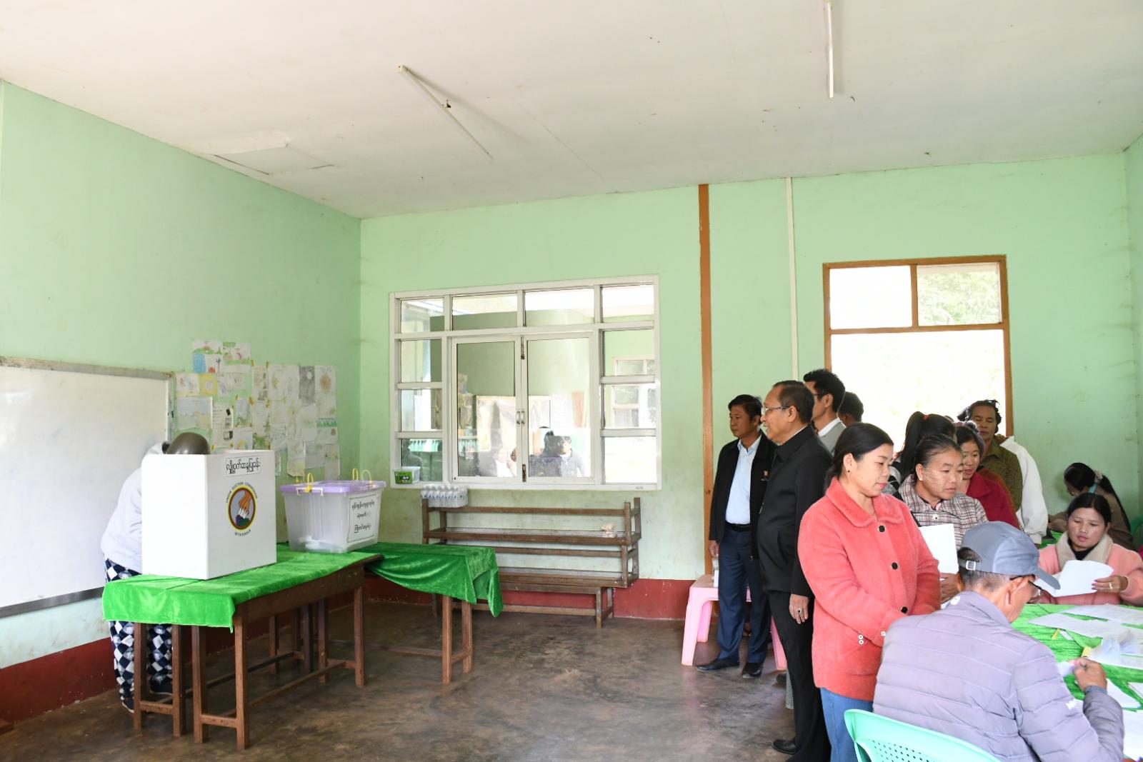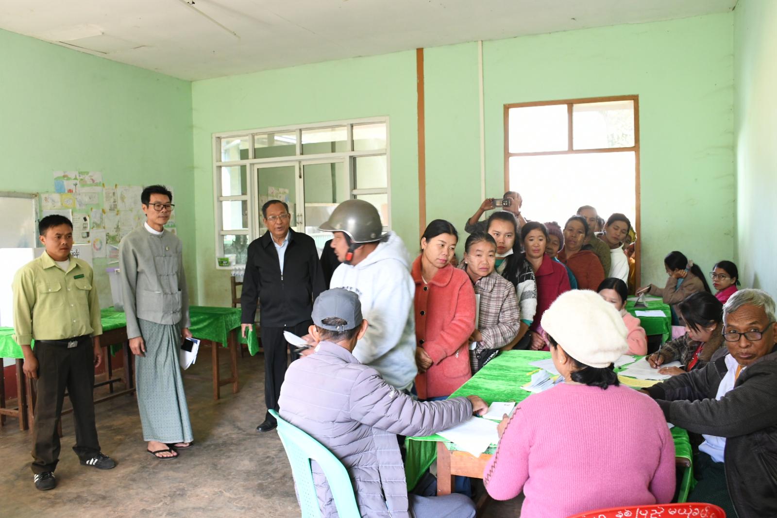 ဆက်လက်၍ ပြည်ထောင်စုရွေးကောက်ပွဲကော်မရှင်အဖွဲ့ဝင် ရှမ်းပြည်နယ် (မြောက်ပိုင်း) တာဝန်ခံနှင့် တာဝန်ရှိသူများသည် နမ့်ခိုက်ကျေးရွာ အခြေခံပညာမူလတန်းကျောင်း မဲရုံ၌ နောင်မွန်၊ နောင်ဖော့၊ စဉ့်အင်၊ ခေးနင်းနှင့်ပုန်းထွန်ကျေးရွာအုပ်စုတို့ရှိ မဲဆန္ဒရှင်များ ကြိုတင်ဆန္ဒမဲပေးမှုအခြေအနေများနှင့် ဆင်းရွှေလီပြဇာတ်ရုံမဲရုံ၌ မယ်ဟန်၊ ခါးသျှိ၊ မန်ပျဉ်၊ နမ့်ပေါင်နှင့် နမ္မဗောဒကျေးရွာအုပ်စုများရှိ မဲဆန္ဒရှင်များ ကြိုတင်ဆန္ဒမဲပေးမှု အခြေအနေများအား ကြည့်ရှုခဲ့ရာ ကြိုတင်ဆန္ဒမဲပေးနိုင်ရေးအတွက် မဲရုံမှူး၊ ဒုတိယမဲရုံမှူးနှင့် ကျေးရွာအုပ်စု ကော်မရှင်အဖွဲ့ခွဲဝင်များက လုပ်ငန်းဆောင်ရွက်မှုအခြေအနေများအား ရှင်းလင်းတင်ပြခဲ့ပြီး ပြည်ထောင်စုရွေးကောက်ပွဲကော်မရှင်အဖွဲ့ဝင် ရှမ်းပြည်နယ် (မြောက်ပိုင်း) တာဝန်ခံ ဦးမြင့်ဦးက ပေါင်းစပ်ညှိနှိုင်း ဆောင်ရွက်ခဲ့ကြောင်း သိရသည်။