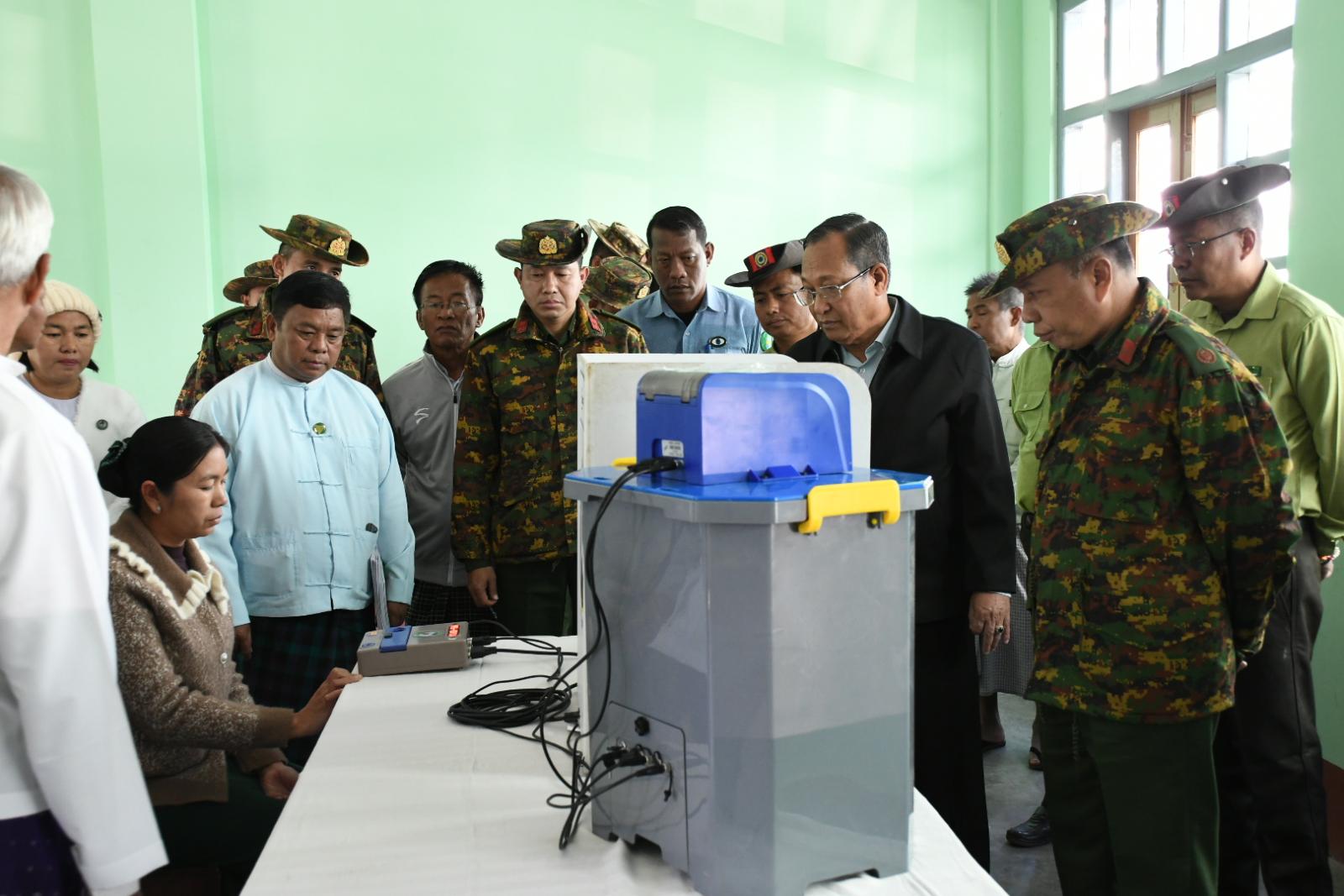 ထို့နောက် ပြည်ထောင်စုရွေးကောက်ပွဲကော်မရှင်အဖွဲ့ဝင် ရှမ်းပြည်နယ်(မြောက်ပိုင်း) တာဝန်ခံနှင့် တာဝန်ရှိသူများသည် အမှတ်(၅)အောင်မင်္ဂလာရပ်ကွက်နှင့် အမှတ်(၂)အောင်မေတ္တာရပ်ကွက် မဲရုံသို့ကွင်းဆင်းကြည့်ရှုစစ်ဆေးခဲ့ရာ မဲရုံတာဝန်ရှိသူများက မြန်မာအီလက်ထရောနစ် မဲပေးစက်(MEVM)နှင့် မဲပေးနိုင်ရေး ကြိုတင်ပြင်ဆင်ဆောင်ရွက်ထားရှိမှု အခြေအနေများအား ရှင်းလင်းတင်ပြခဲ့ပြီး ပြည်ထောင်စုရွေးကောက်ပွဲကော်မရှင်အဖွဲ့ဝင် ရှမ်းပြည်နယ် (မြောက်ပိုင်း) တာဝန်ခံဦးမြင့်ဦးက ပေါင်းစပ်ညှိနှိုင်း ဆောင်ရွက်ပေးခဲ့သည်။